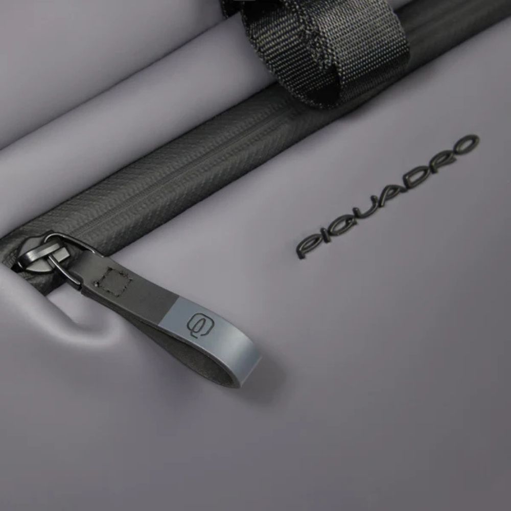 Wasserdichter PC- und iPad-Rolltop-Rucksack von Piquadro mit Brustgurt, Schlössern für Vorhängeschlösser und tragbares Fahrradlicht, RFID-Schutz.