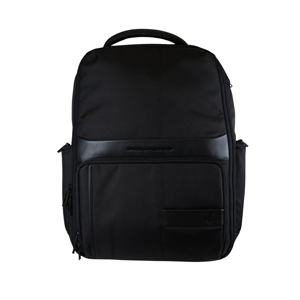 Rucksack für Herren mit PC und iPad von Piquadro aus gummiertem, wasserbeständigem Stoff mit Tasche für AirPods, Stoßschutz und RFID.