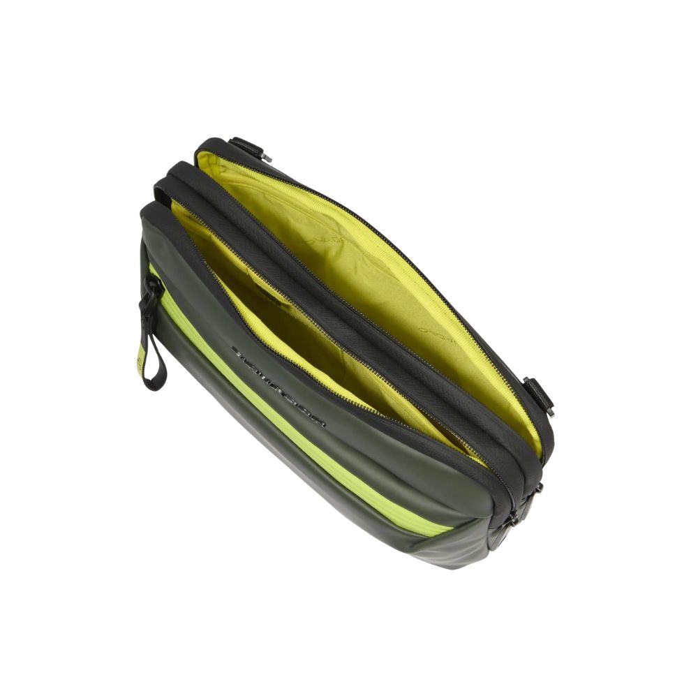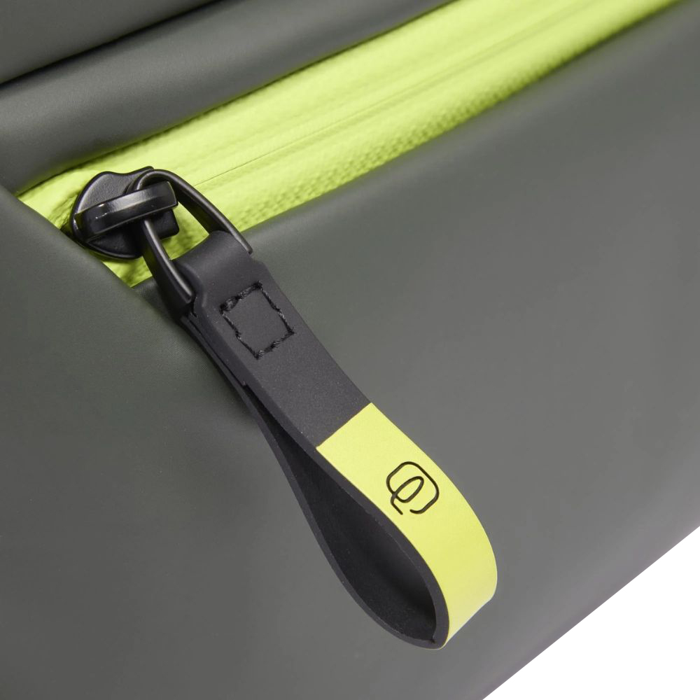 Etui von Piquadro iPad mini aus gummiertem, wasserbeständigem Stoff mit abnehmbarem Schultergurt.