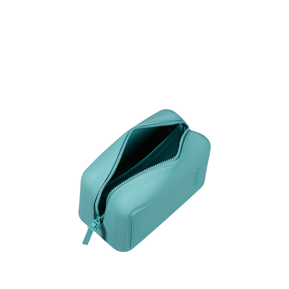 Weicher Silikon-Kulturbeutel von American Tourister mit farblich passendem Reißverschluss und Logo auf der Vorderseite. Waschbar. Herausnehmbare Trennwand, Innentaschen und Innentasche.