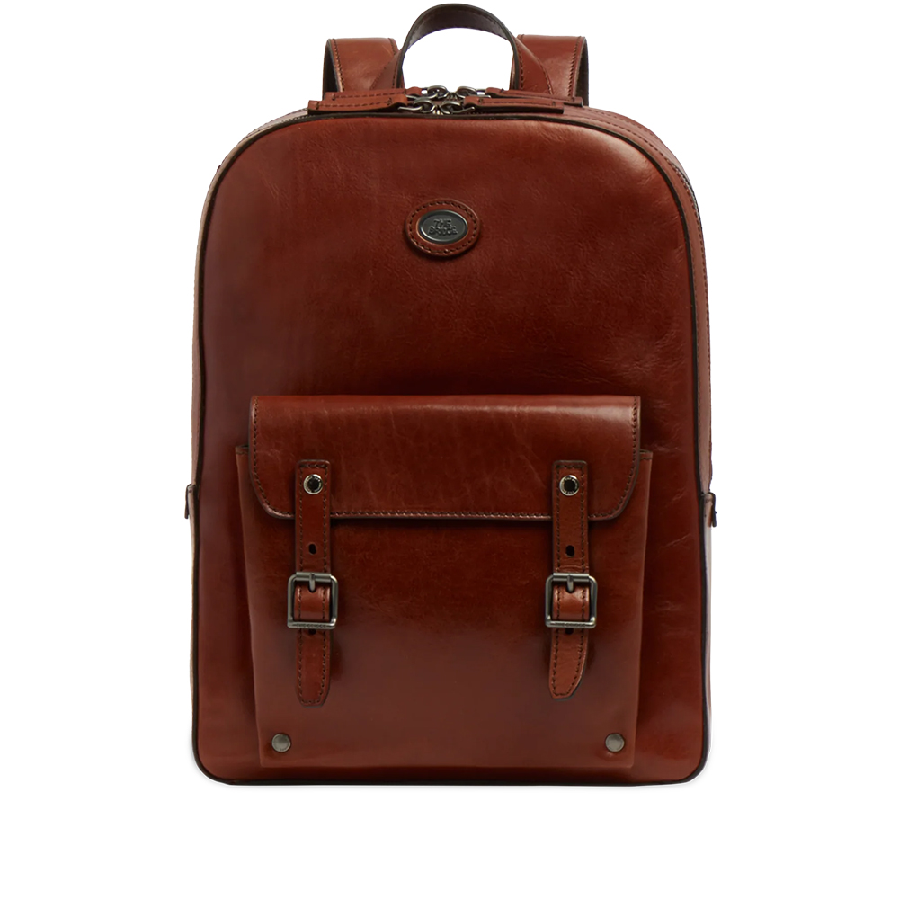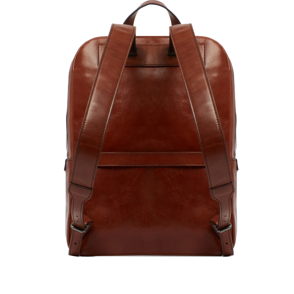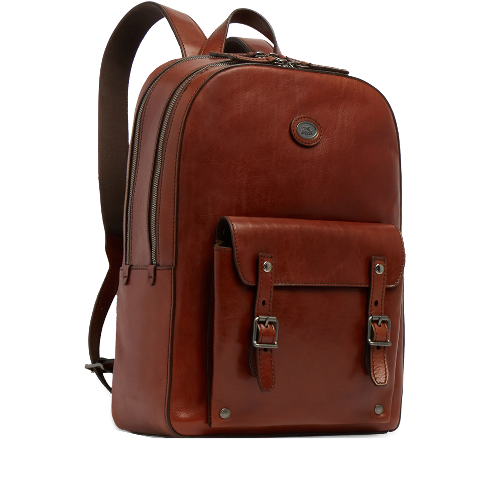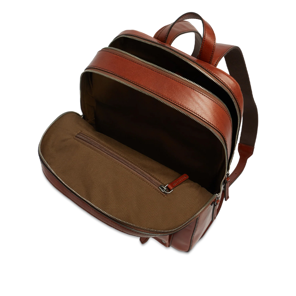 Der Bridge Herren-Lederrucksack mit zwei Reißverschlüssen, Vordertasche und Laptopfach.