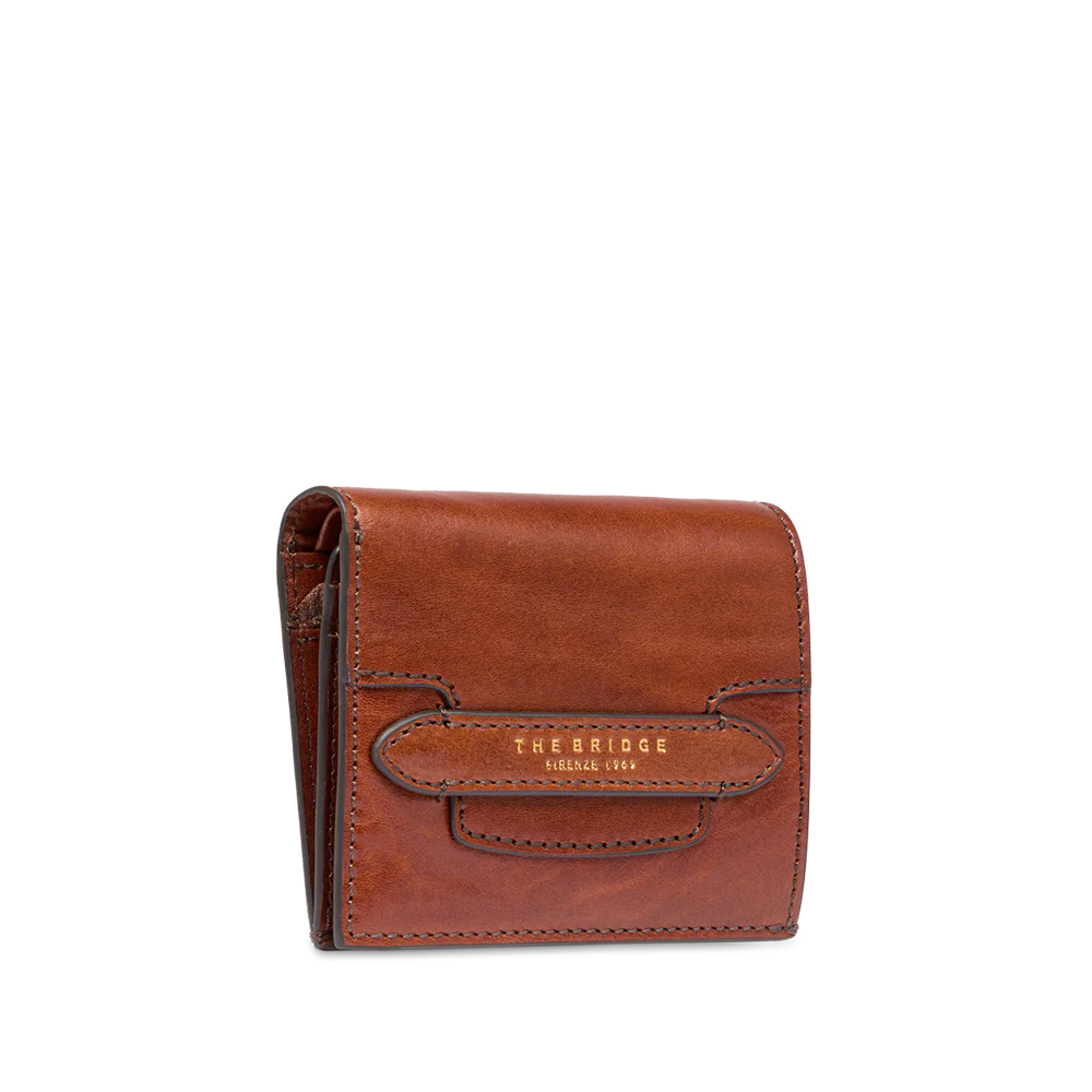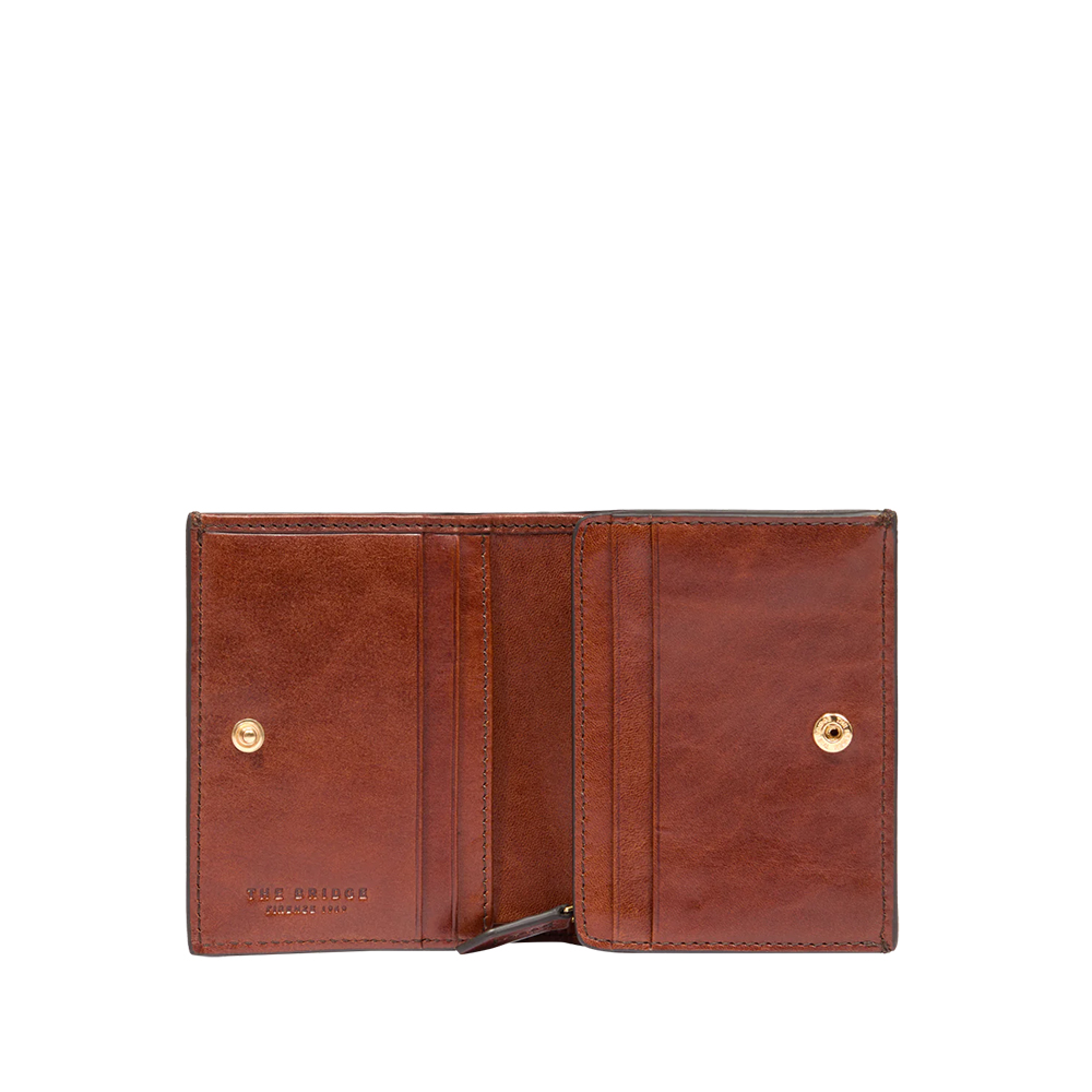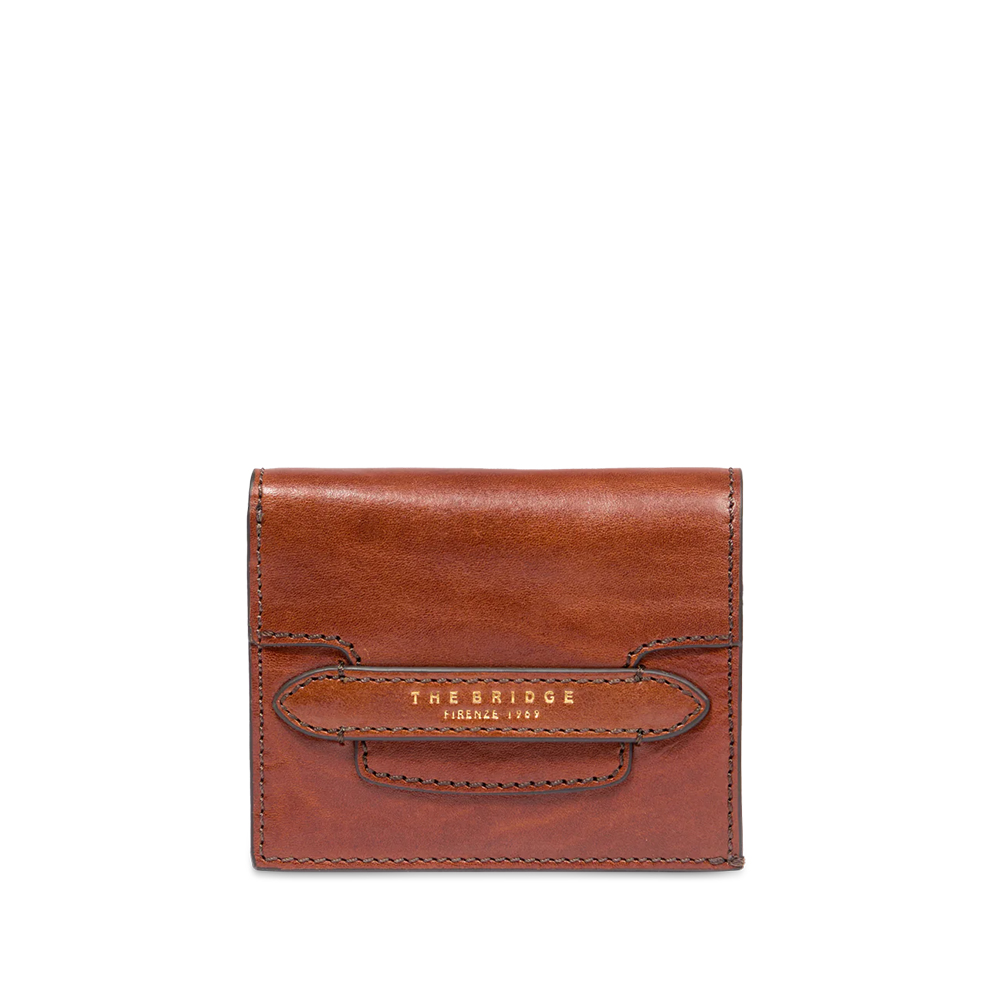 Das The Bridge Portemonnaie ist mit einem goldfarbenen Logo auf der Vorderseite verziert. Sein Raum ist am besten organisiert, um das Notwendige mit Ordnung und Sorgfalt zu lagern.
