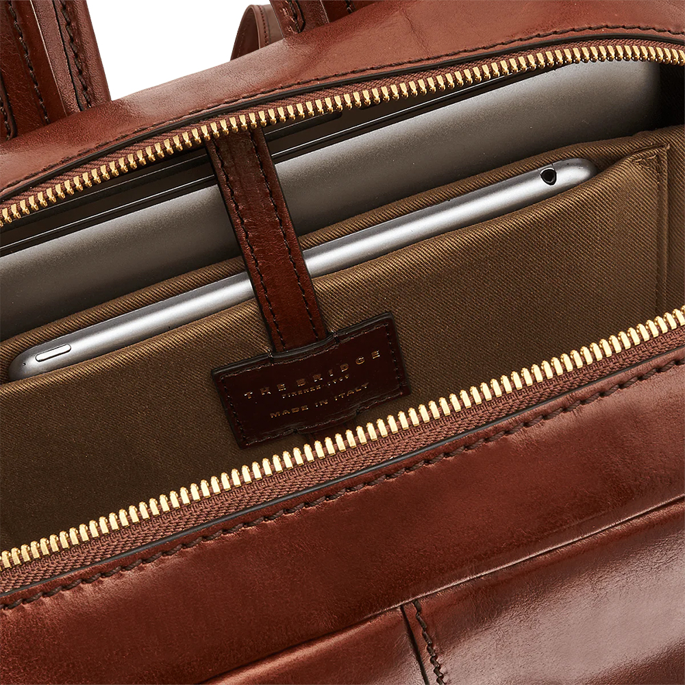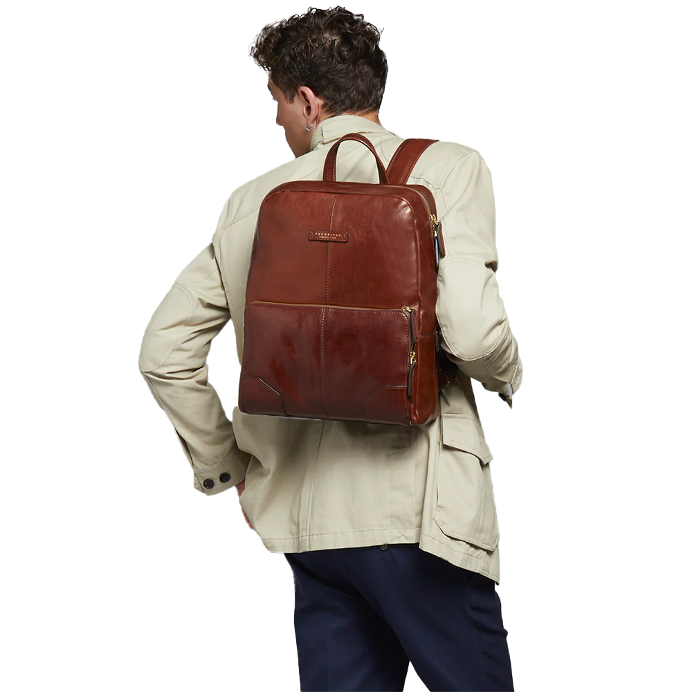 Der Rucksack Vespucci aus Leder von The Bridge hat ein praktisches und essentielles Design. Perfekt für Reisen und Freizeit, mit Laptoptasche.