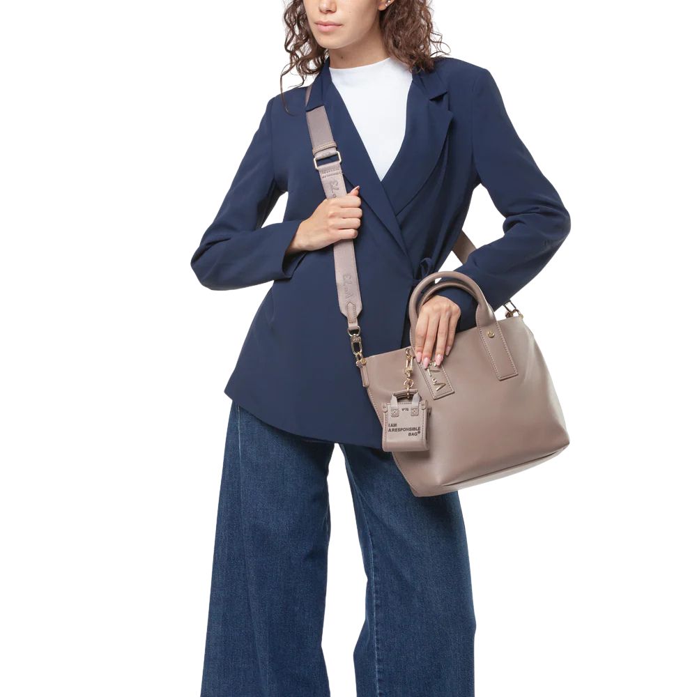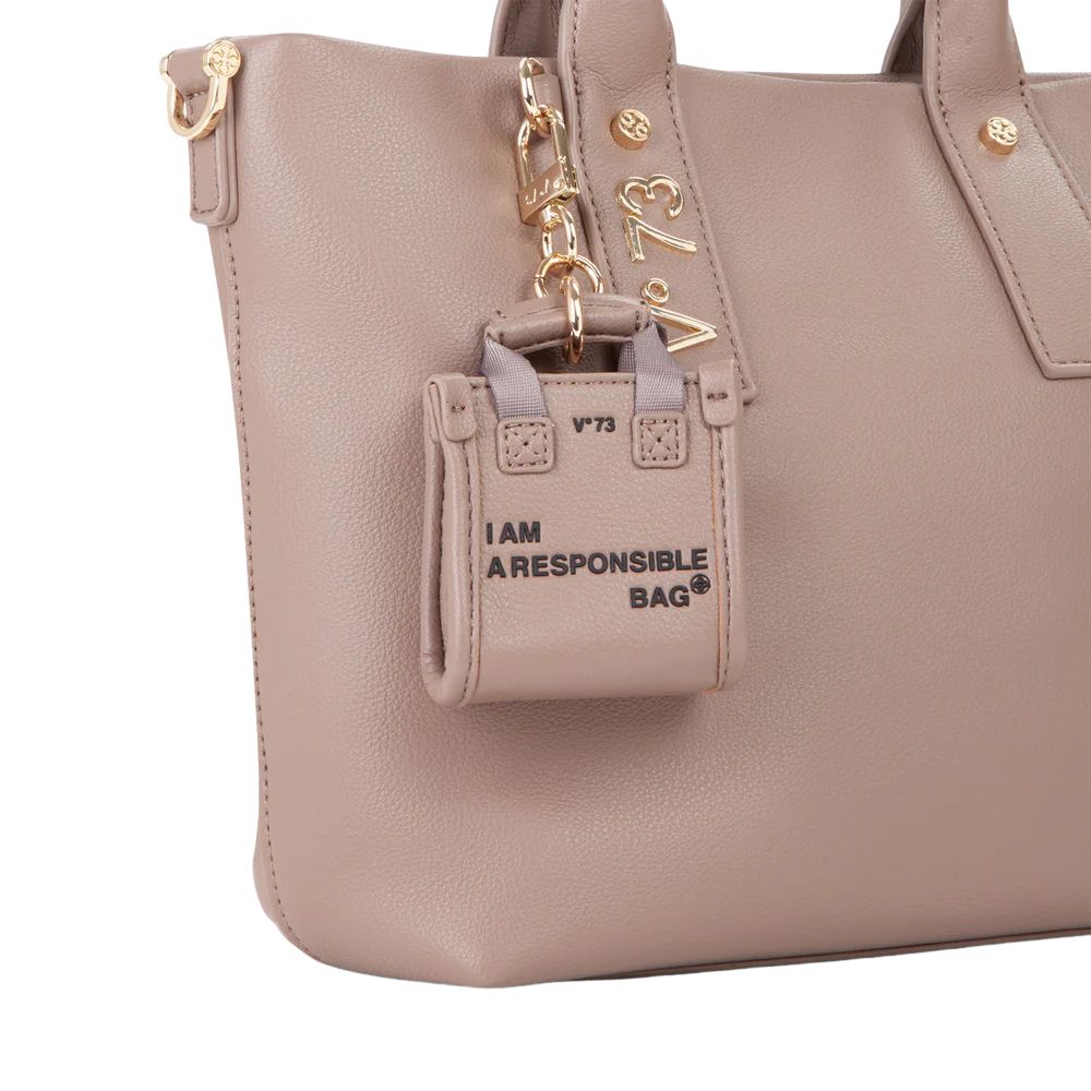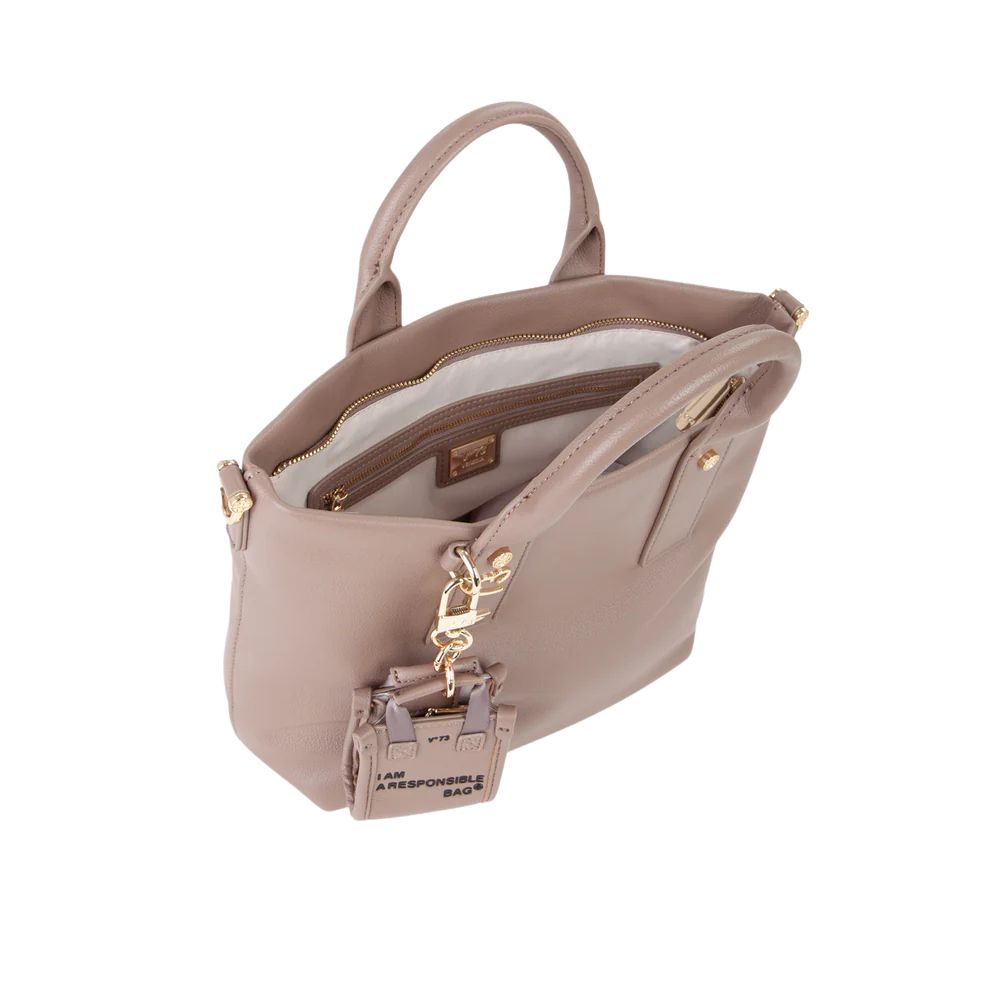Die Handtasche Matilda von V73 ist aus recyceltem Nappaleder gefertigt. Verziert mit einem charmanten Mini Bag mit dem ikonischen Schriftzug I am a responsible bag.