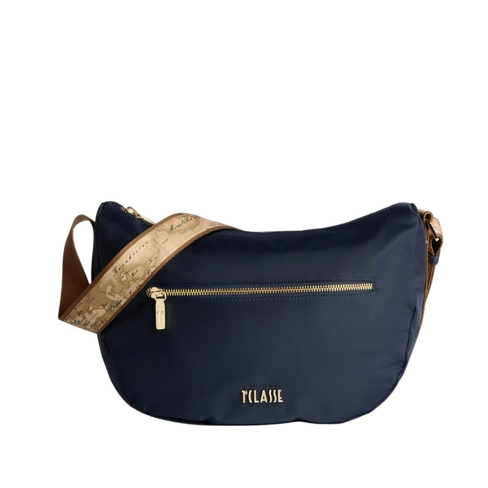 The Eco Vibe shoulder bag by Alviero Martini in recycled nylon, with a minimal and versatile design, but roomy and functional. This bag with matching saffiano fabric details and personalized Geo ribbons adapts to every outfit.