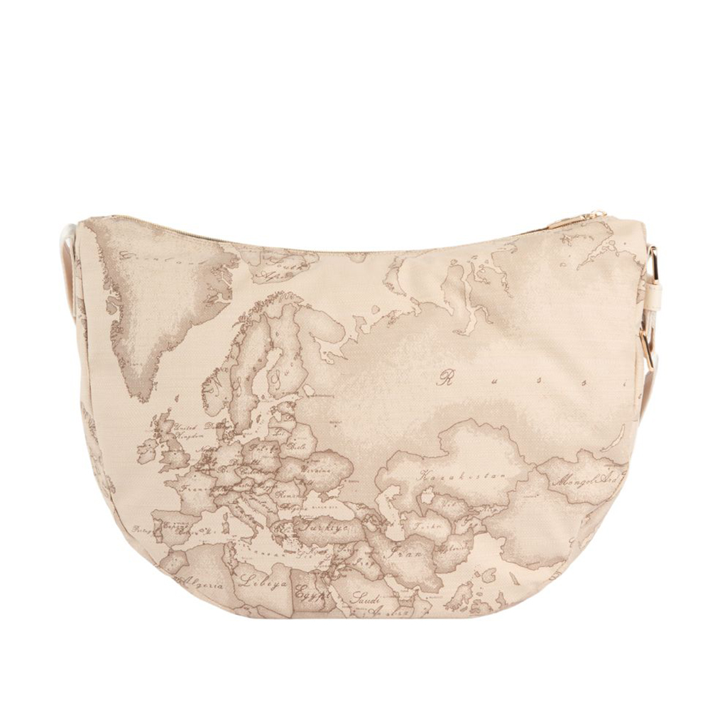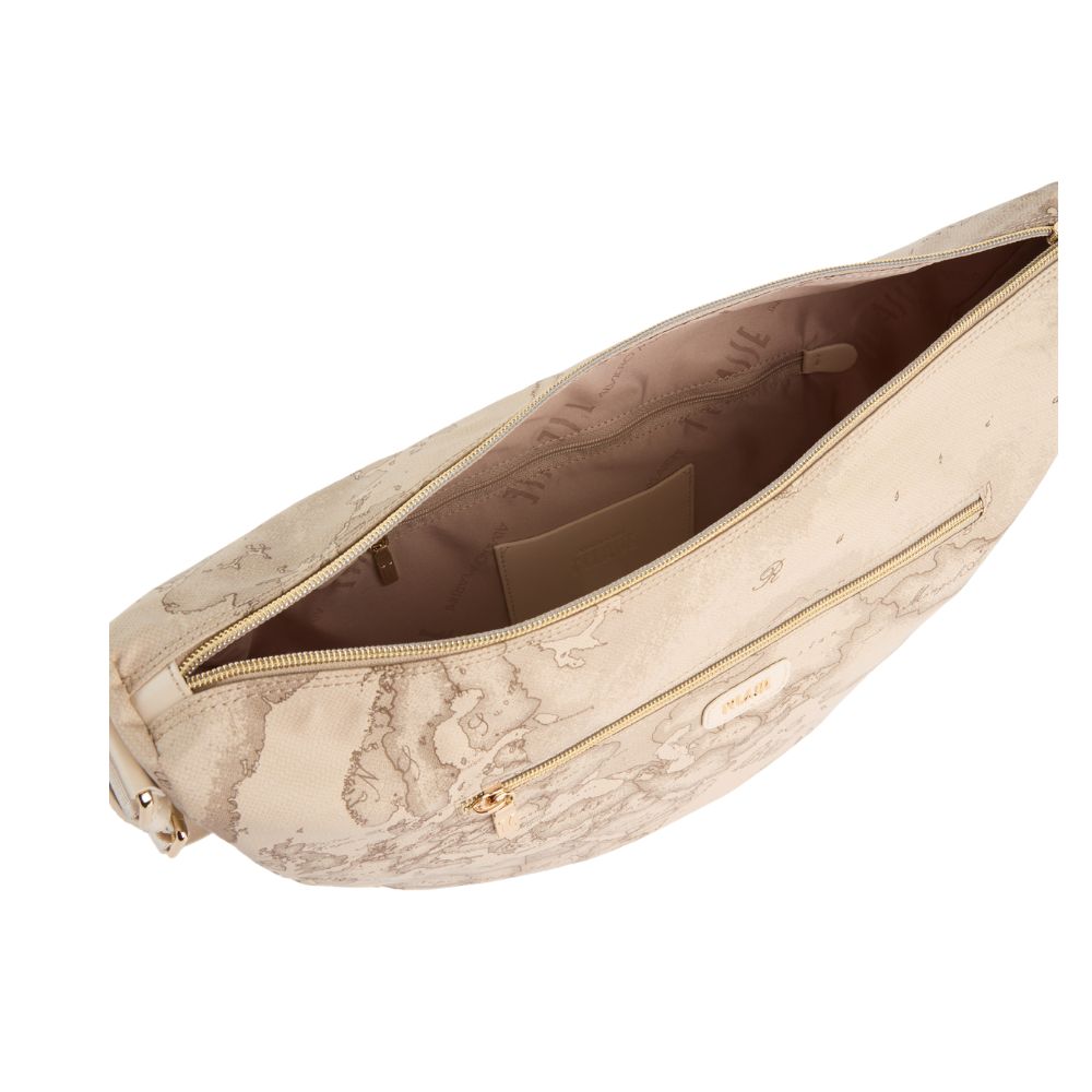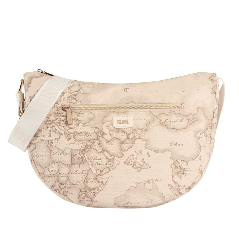 The Soft Petals shoulder bag by Alviero Martini is perfect for a functional summer town look: the soft fabric veers over the sand-colored undertones of the Geo Safari print, paired with smooth leather details in Rafia. The detail on the side captures the aesthetic of Collection, inspired by the shapes of Australian eucalyptus leaves, while the patch on the front bears the 1 Class logo and embellishes the front zip-lock pocket. An extremely roomy model perfect for carrying all the essentials with you, without sacrificing attention to your outfit.