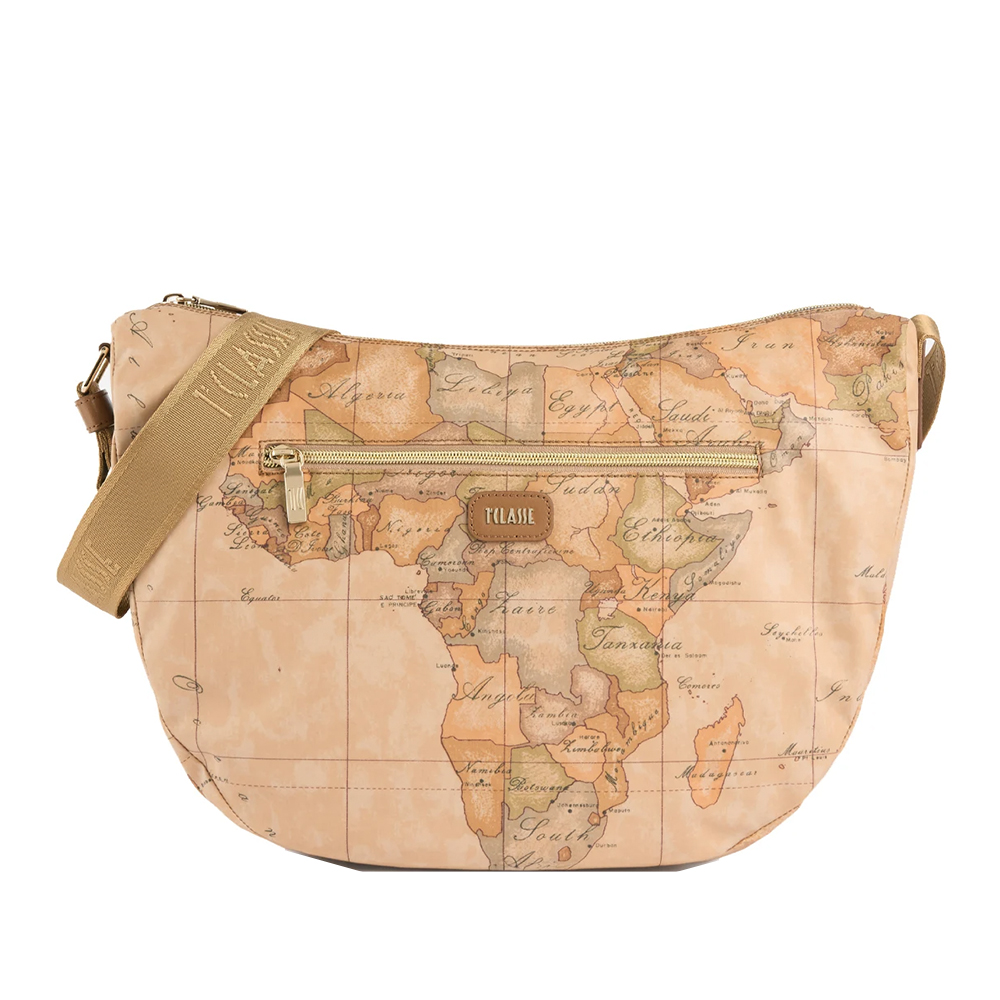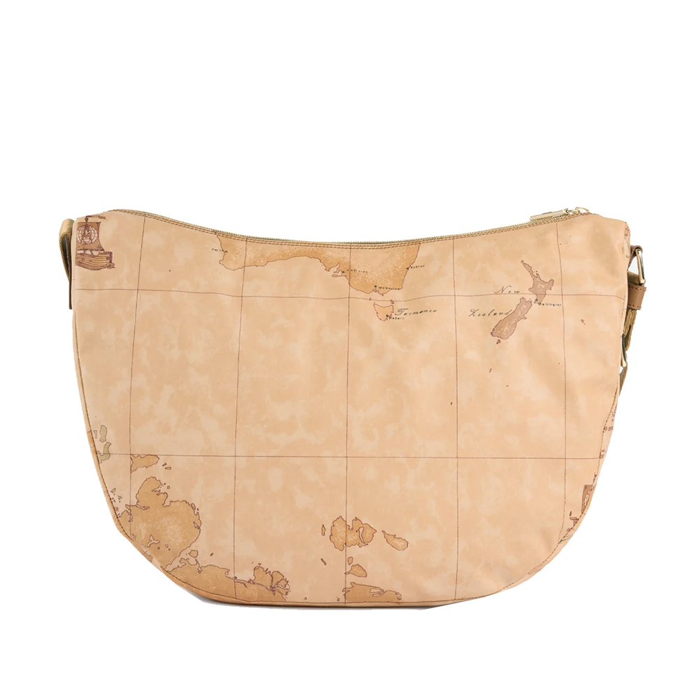 The Soft Petals shoulder bag by Alviero Martini is essential in mid-season thanks to its soft, functional and waterproof fabric. The model pairs the iconic Geo Classic print with smooth leather detail on the side, shaped to the lines of Australian eucalyptus leaves and in seasonal colors; the leather patch with the 1A Class logo highlights the zip-lock pocket. The result is a soft, lightweight and roomy bag, made unique by distinctive details that will make everyday looks eye-catching.