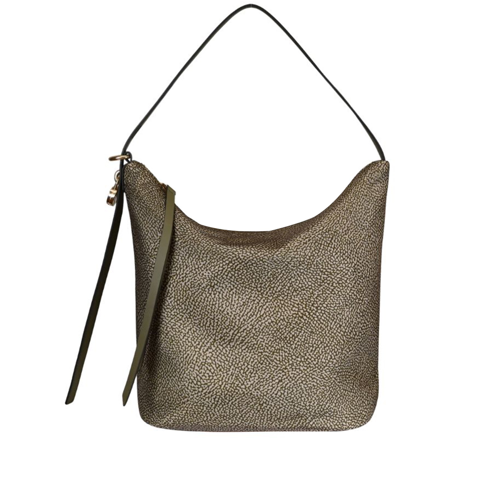 Borbonese's shoulder bag has a minimal and elegant style that pairs perfectly with a chic casual outfit. The fabric makes this bucket-shaped bag very versatile.