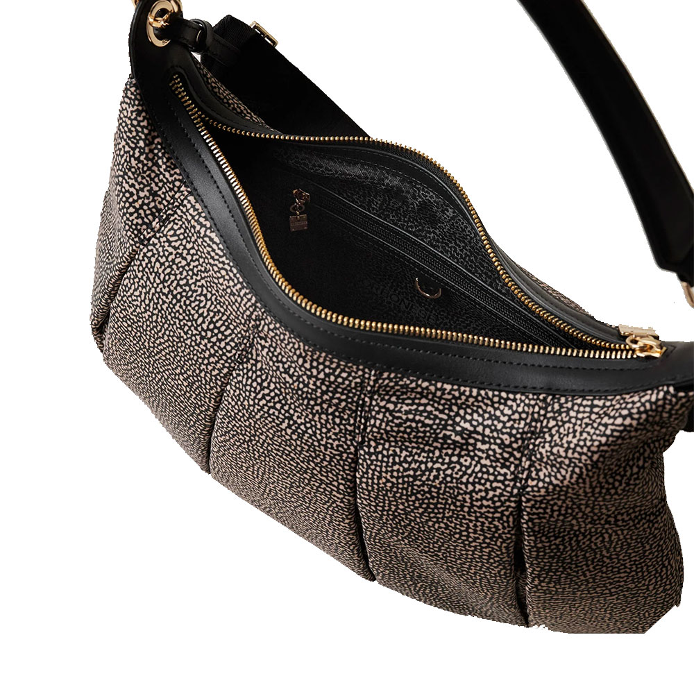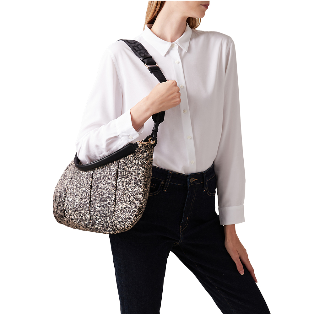 The shapes of this Hobo bag by Borbonese, reminds a little of a croissant, hence the name of the line. This soft and capacious bag demonstrates a retro appeal, but that is updated with an elegant and chic look.