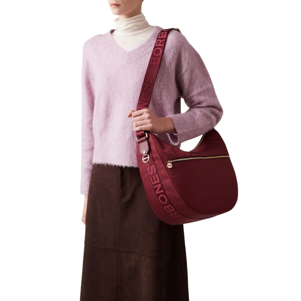 The Borbonese Luna Bag becomes a Medium hobo bag from the Eco Line. The ideal combination of style and versatility.