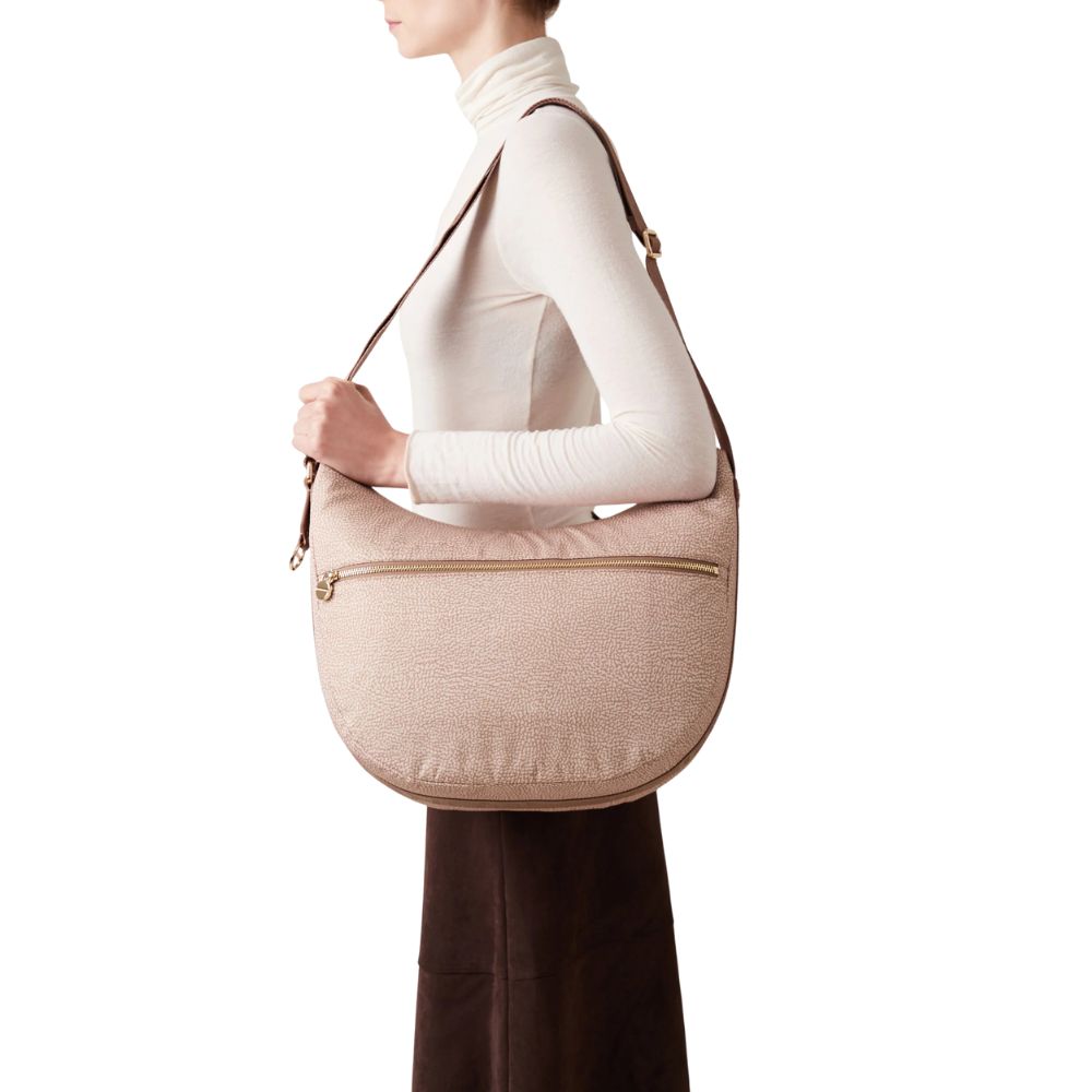 The Borbonese Luna Bag becomes a Medium hobo bag from the Eco Line. The ideal combination of style and versatility.