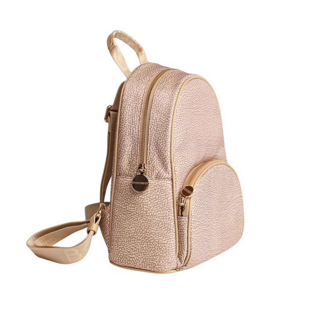 Borbonese's medium-sized backpack was designed to bring an enveloping embrace back into its shape. The curvy silhouette and choice of soft materials help make this accessory a must-have of the season.