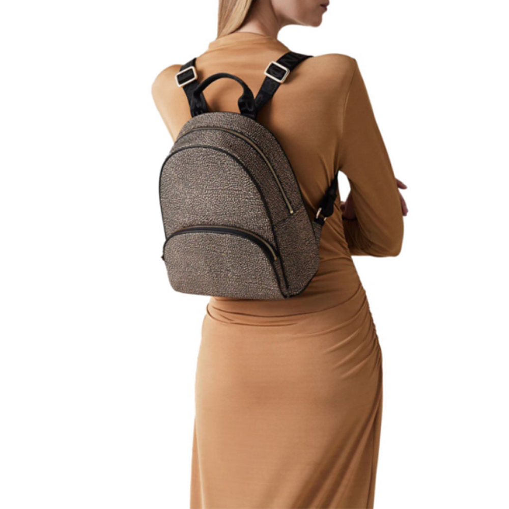 Borbonese's medium-sized backpack was designed to bring an enveloping embrace back into its shape. The curvy silhouette and choice of soft materials help make this accessory a must-have of the season.