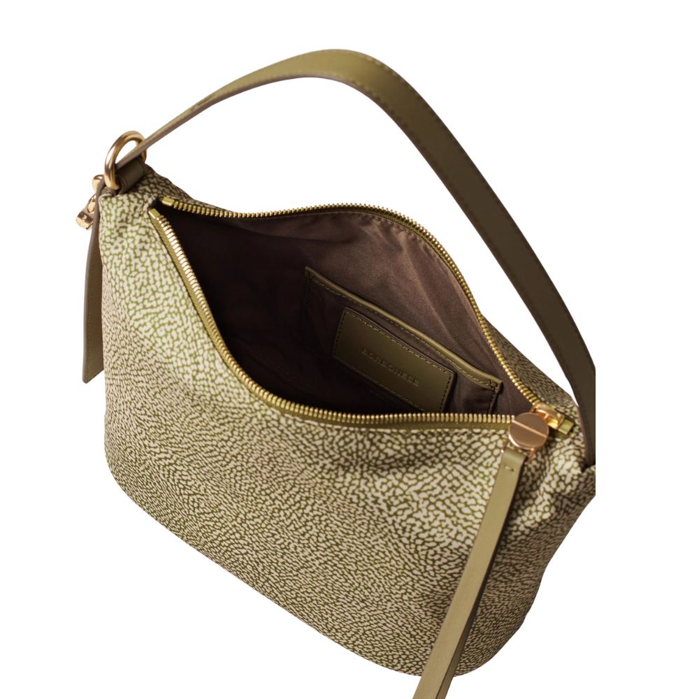 Borbonese's shoulder bag has a minimal and elegant style that pairs perfectly with a chic casual outfit. The fabric makes this bucket-shaped bag very versatile.
