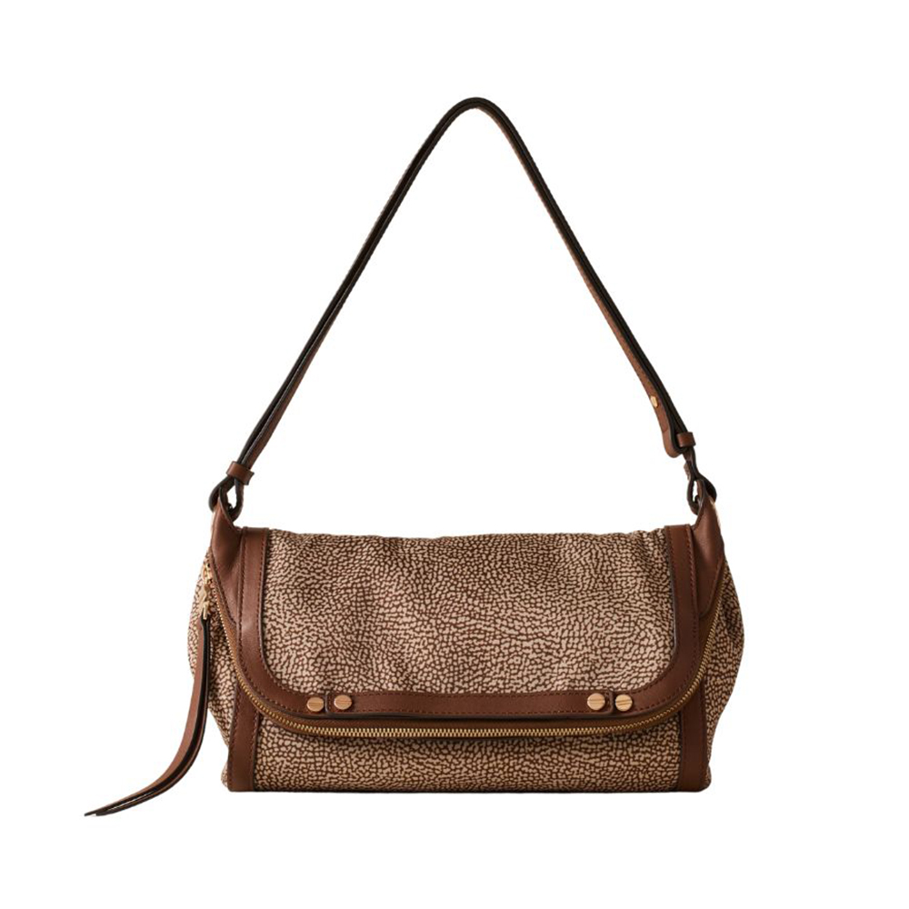 The Borbonese shoulder bag tells of a harmonious balance between elegance and functionality. Lightweight minibag with a rounded silhouette and refined construction that enhances the softness of the material.