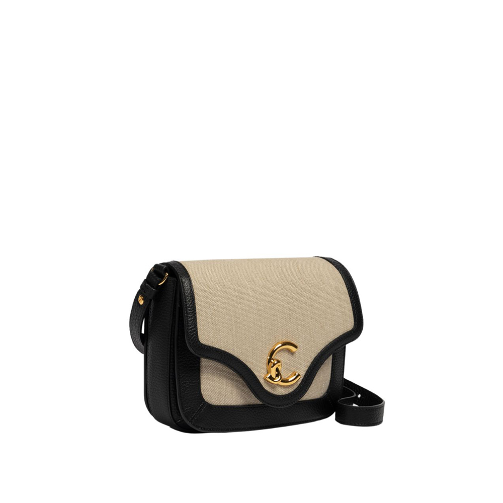 The C-Me Canvas bag by Coccinelle with geometric lines and sophisticated curves, reinforce the singularity of its design. The construction of the model adds a touch of functionality and delicate elegance.