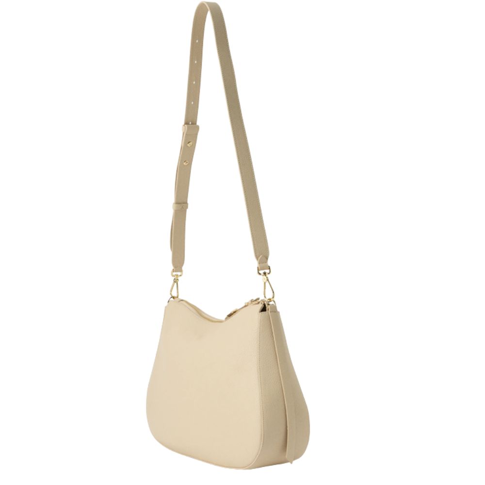 The Nory shoulder bag has a line modeled on sinuous curves that enhance the beauty of the leather. This bag is characterized by the saddle, given by the softness of the leather, which gives it versatility and attitude, with the leather side ribbons giving further details of femininity.