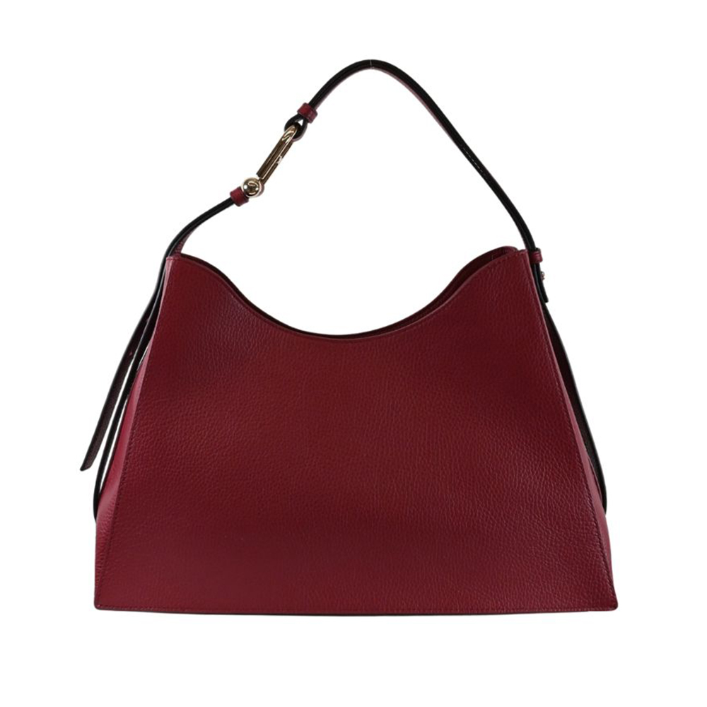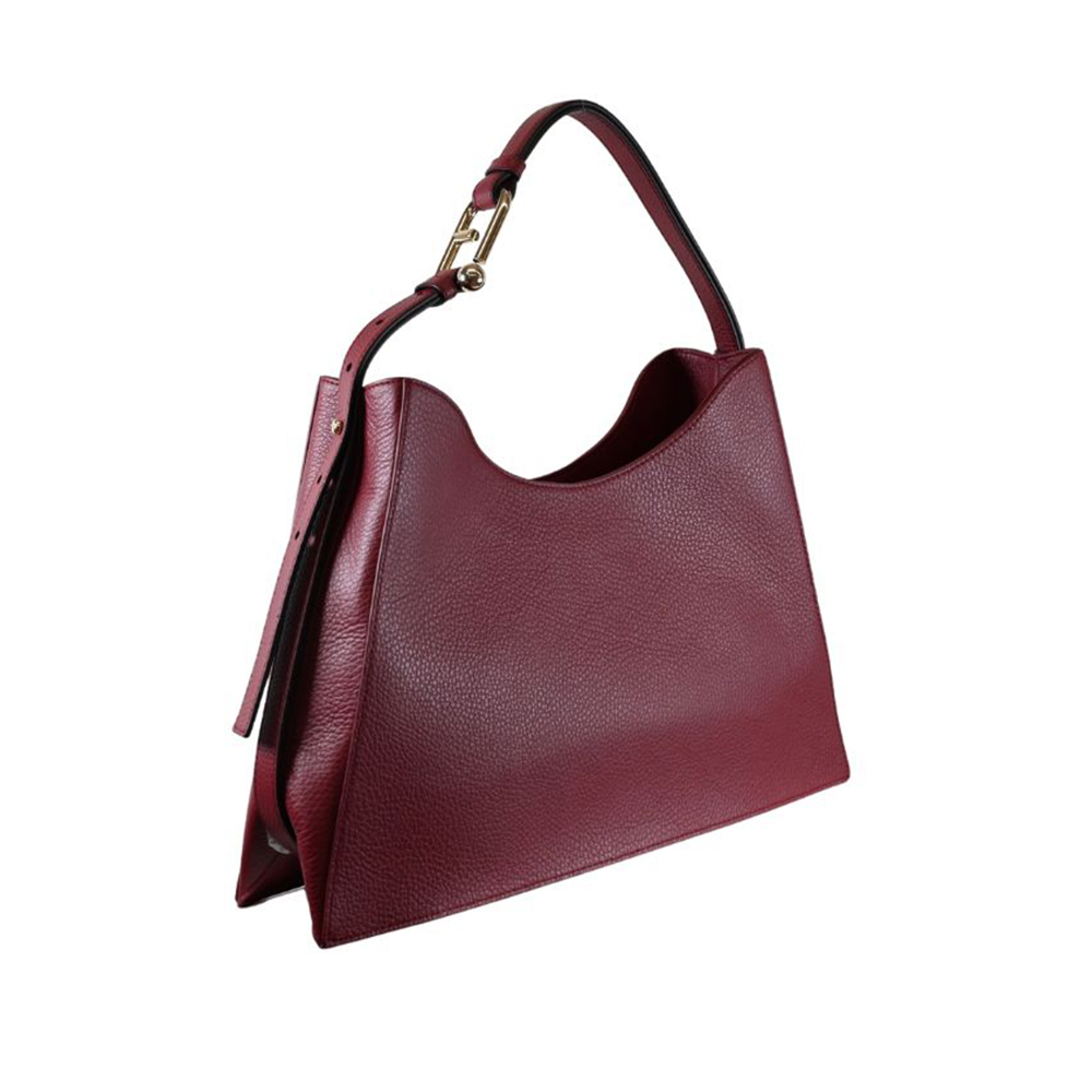 The Nuvola bag by Furla with geometric, clear and delicate lines, made of soft leather with a garnet finish for a truly natural touch. The large and spacious interior is organized with two compartments with magnet closure and central zipped pocket to offer perfect management of personal effects. The adjustable handle is made distinctive by the new interpretation of Arcosfera hardwear which combines the iconic logo with the original round element of the brand.
