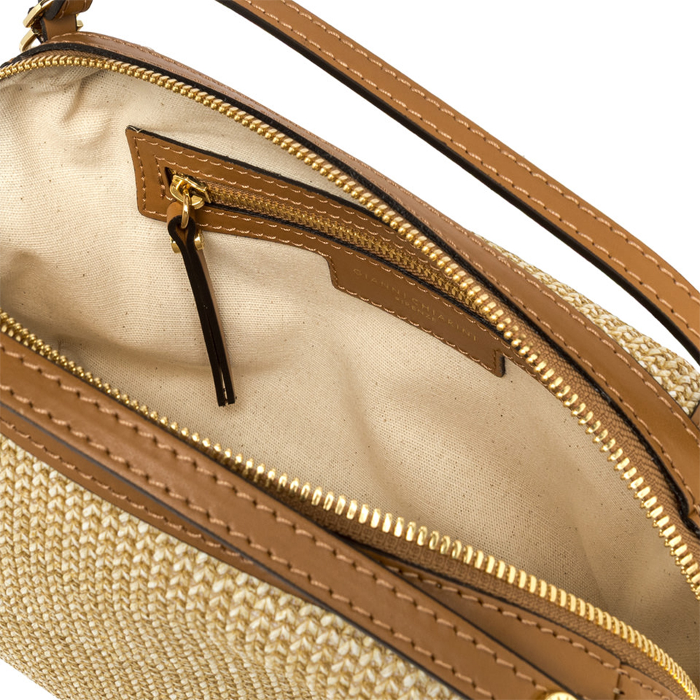 Compact, lightweight and spacious, the Alifa bag by Gianni Chiarini is the perfect accessory for those who want an exquisitely summery touch, without sacrificing practicality. Crafted from woven straw, it evokes a chic rustic charm and embellished with leather trim. Featuring double handles for carrying it by hand and a thin shoulder strap in tone, it also offers the possibility of wearing it over the shoulder or crossbody, adapting to any occasion.