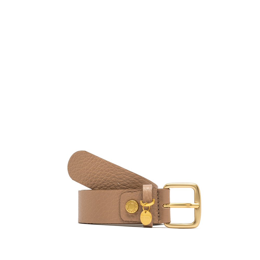 Gianni Chiarini flat belt with essential and sophisticated lines, ideal for completing both casual and elegant looks. Crafted from maxi-grain leather, it is embellished with a logo buckle with a delicate decorative logo pendant.