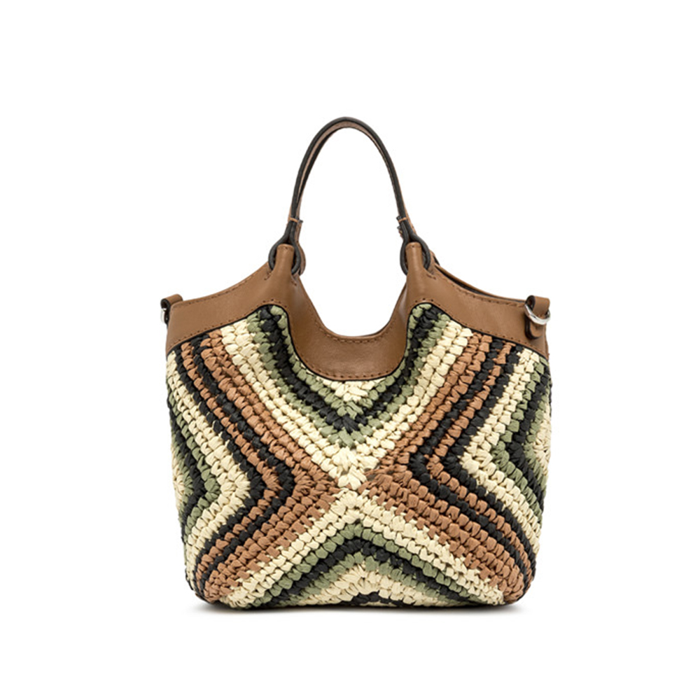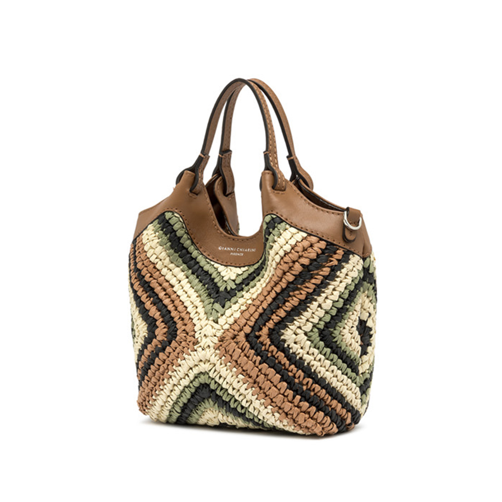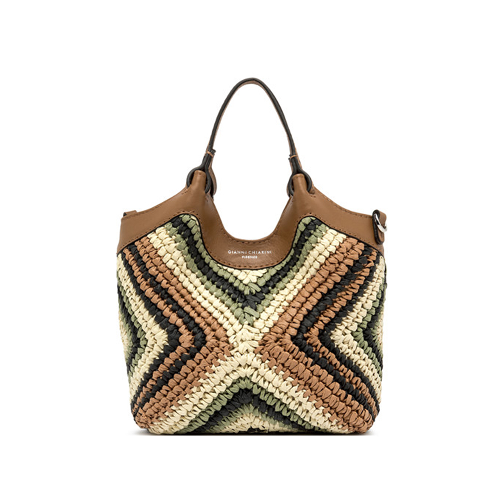 The icon of the Gianni Chiarini brand, the DUA bag, is made of woven straw, characterized by a unique and distinctive texture. Equipped with a single compartment, it features leather upper profiles and double matching handles. Practical and essential, it is perfect to complete each look with style. It can be carried by hand or on the shoulder.