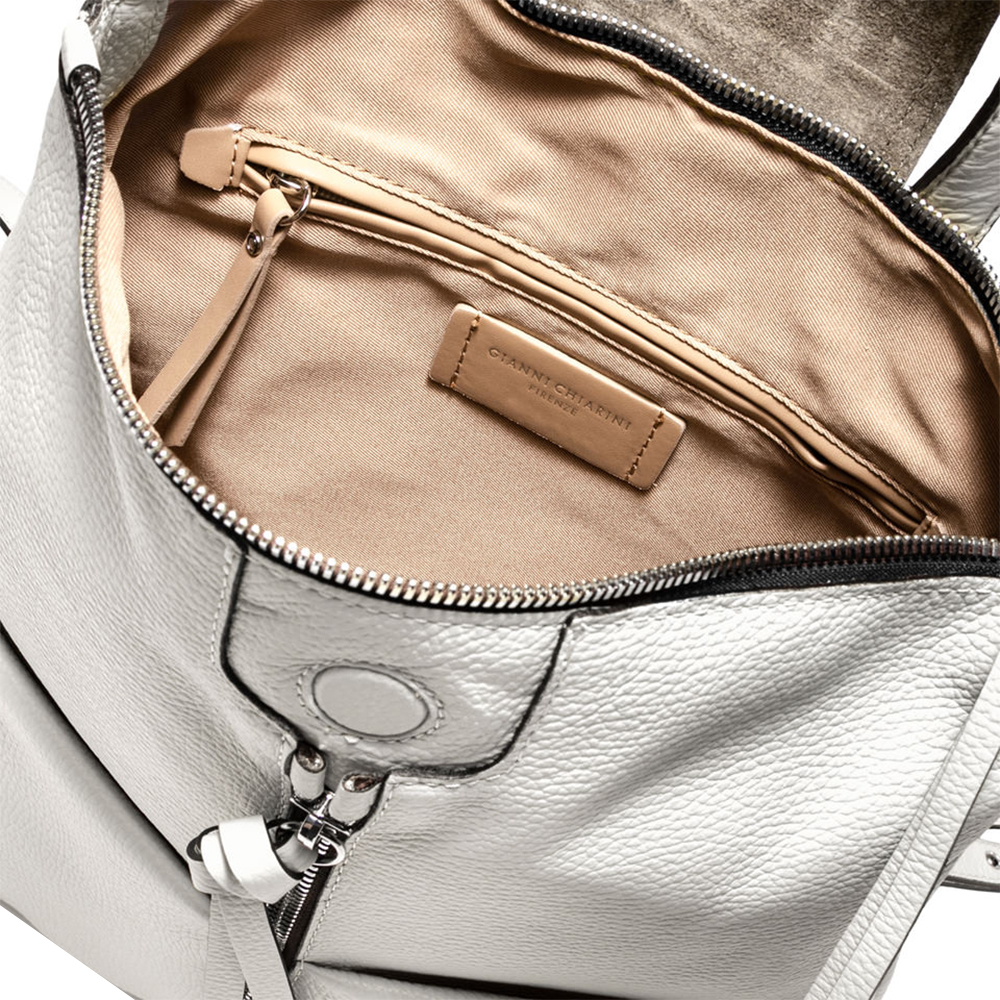 The Giada backpack by Gianni Chiarini is characterized by maxi front and side pockets, its the ideal accessory for all your looks.