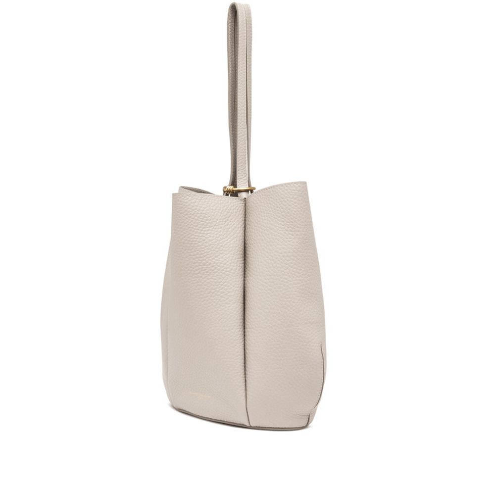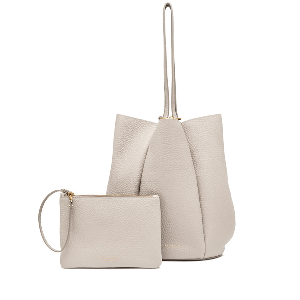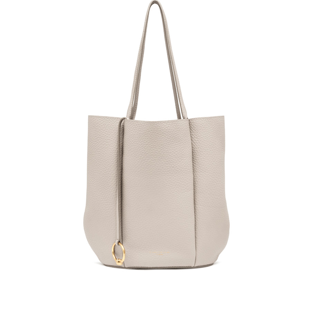 Lily is Gianni Chiarini's new shopping bag, made of bubble double leather with a maxi grain and featuring a unique and sophisticated flower silhouette. Equipped with two leather handles, enriched by the iconic metal knot that gives a contemporary touch. The closure is made by inserting the handles into a metal ring embellished with the same knot, a decorative charm of great trend.