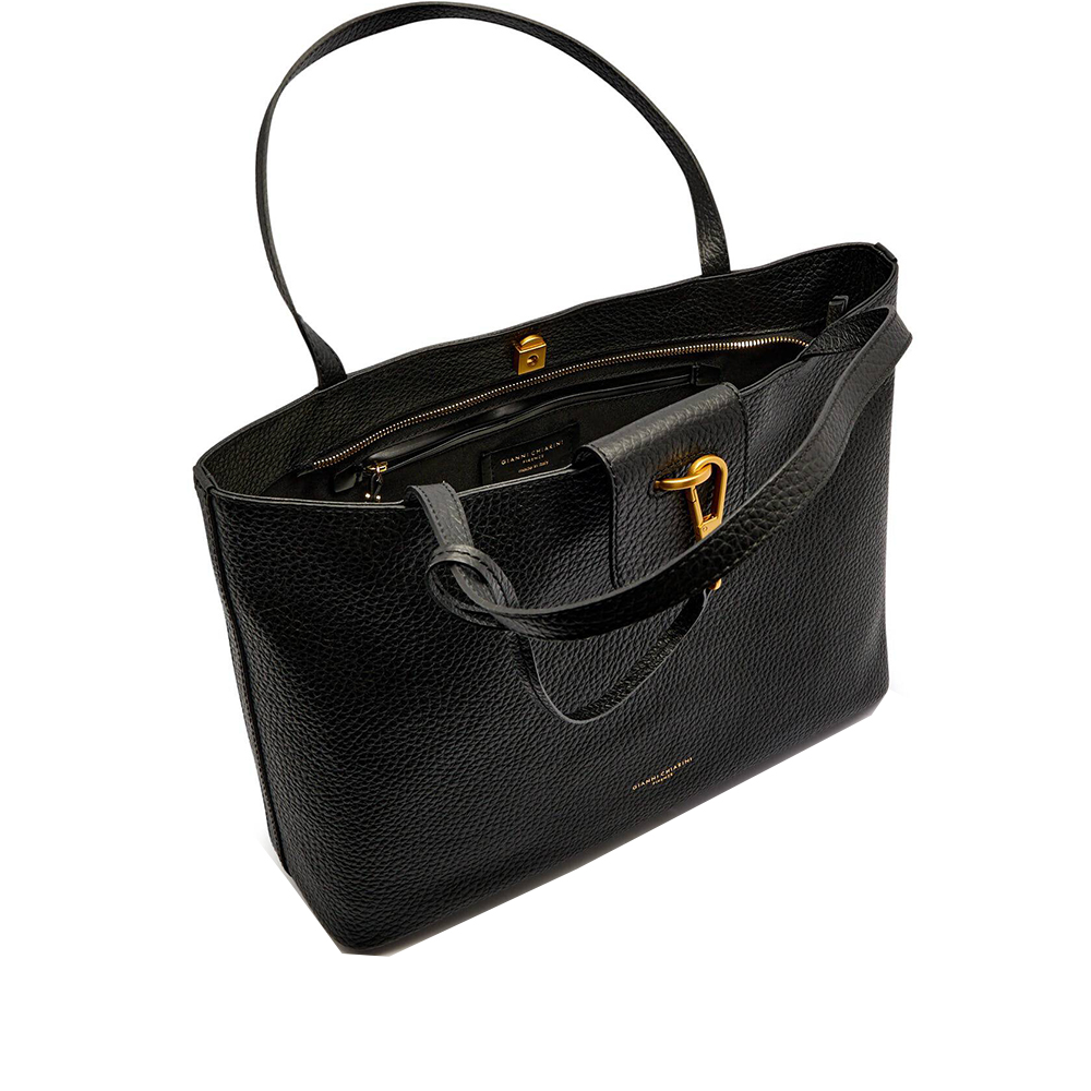 The new Marisol shoulder bag by Gianni Chiarini, is made of maxi grain leather. Elegant and contemporary is designed for a woman in step with the times, characterized by a geometric shape that makes it immediately a must-have. Features two top handles for shoulder portability, a main compartment with zip and snap closure. Accessorized by a removable logo carabiner.