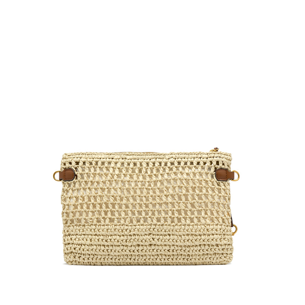 Nefeli is Gianni Chiarini's new pouch with a rectangular silhouette, made of crochet straw, perfect for tackling summer days with lightness and style. It features a zip closure and metal details that add a bright touch to the design. Equipped with a practical and removable shoulder strap for versatile use.