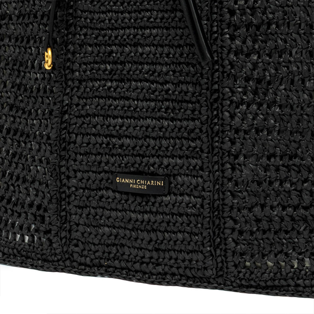 Nefeli is Gianni Chiarini's new shopper, made of crochet straw, perfect for tackling summer days with lightness and style. It features a drawstring closure and metal details that add a bright touch to the design.