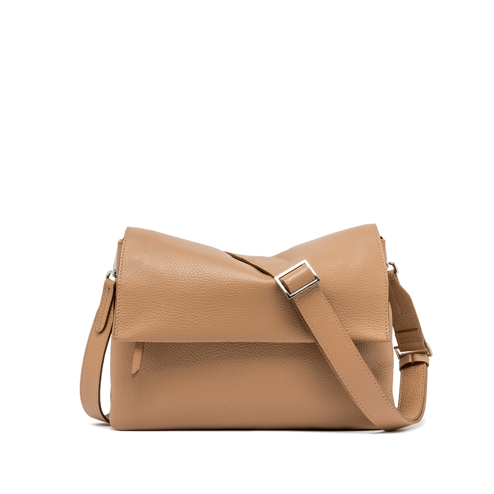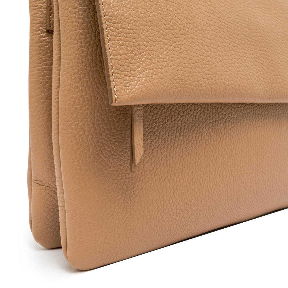 To be carried by hand or with the thin leather shoulder strap, the Three bag by Gianni Chiarini Firenze is made of fine hammered leather. Young and fun, it features an innovative design that stands out for its contrasting zips, flap and magnetic button at the top. Perfect for casual outfits, but also for elegant evenings.