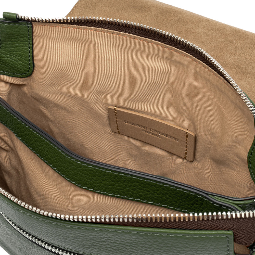 The Three bag by Gianni Chiarini is made of fine hammered leather. Young and fun is composed of two sachets that converge at the top in the detail of the zip. To wear with the most casual outfits but also for an elegant evening to embellish a simple and monochrome look.