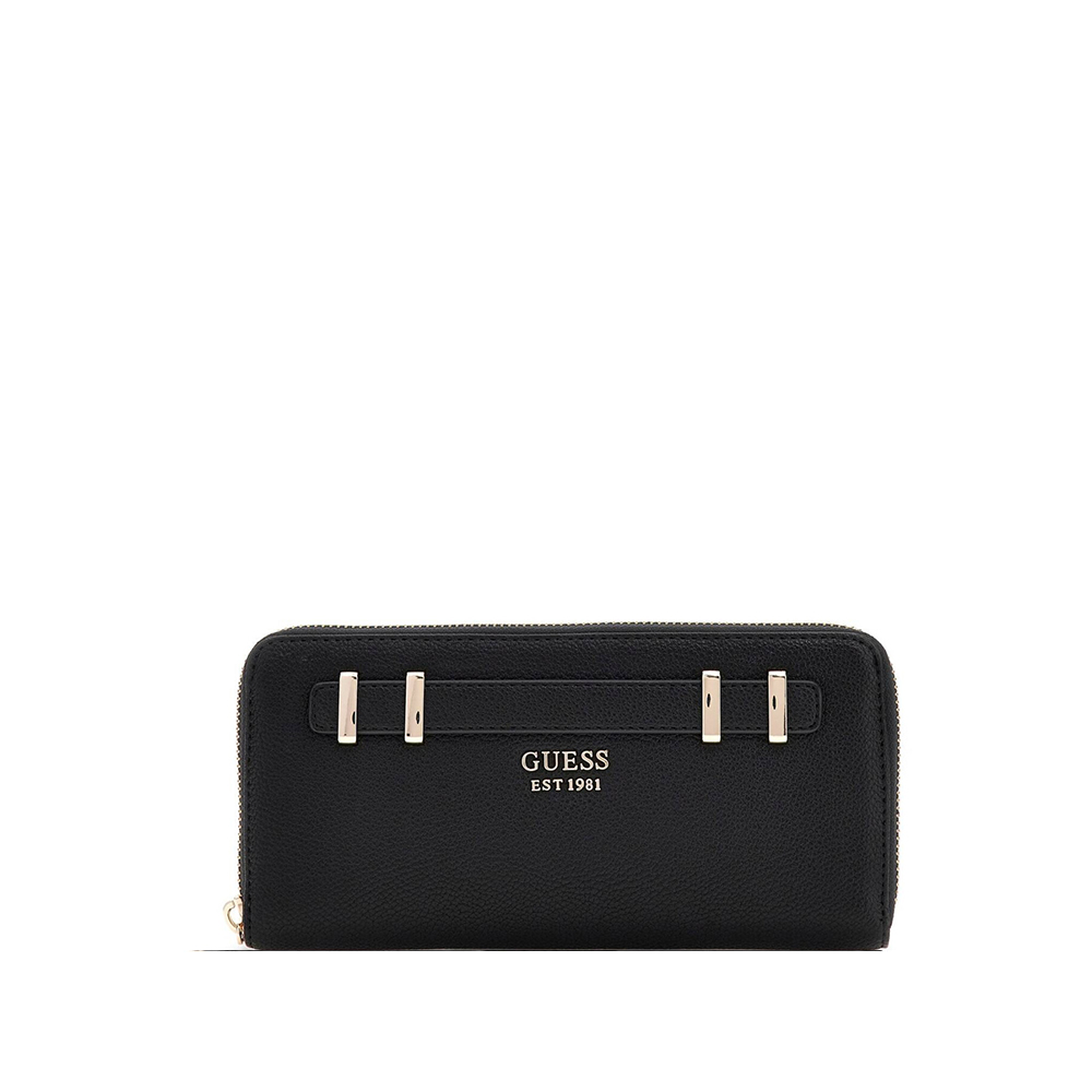 The Gregoria Slg wallet by Guess with zip around closure. The features a large card holder, coin pocket with zip closure and external pocket closed with zip.