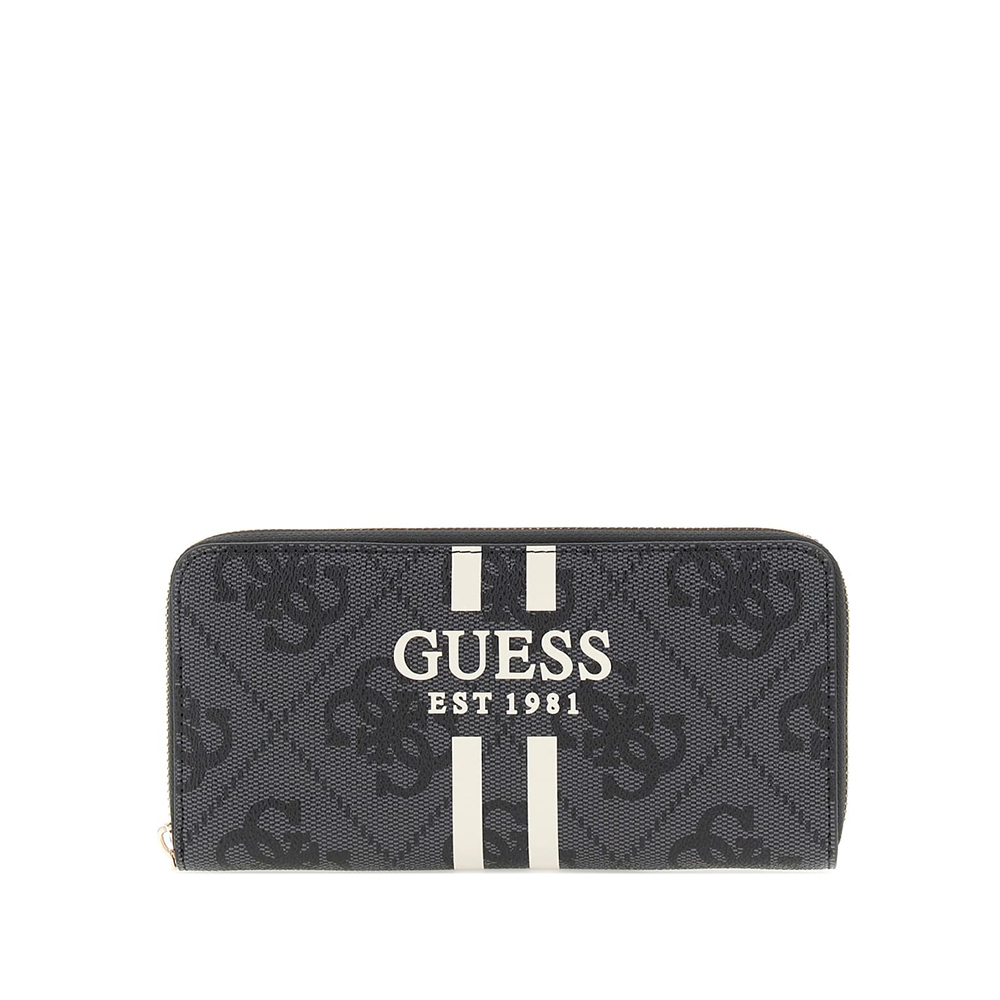 The Laurel Slg womens wallet by Guess has a zip around closure. This wallet features a large card holder, a zip pocket and detachable wrist.