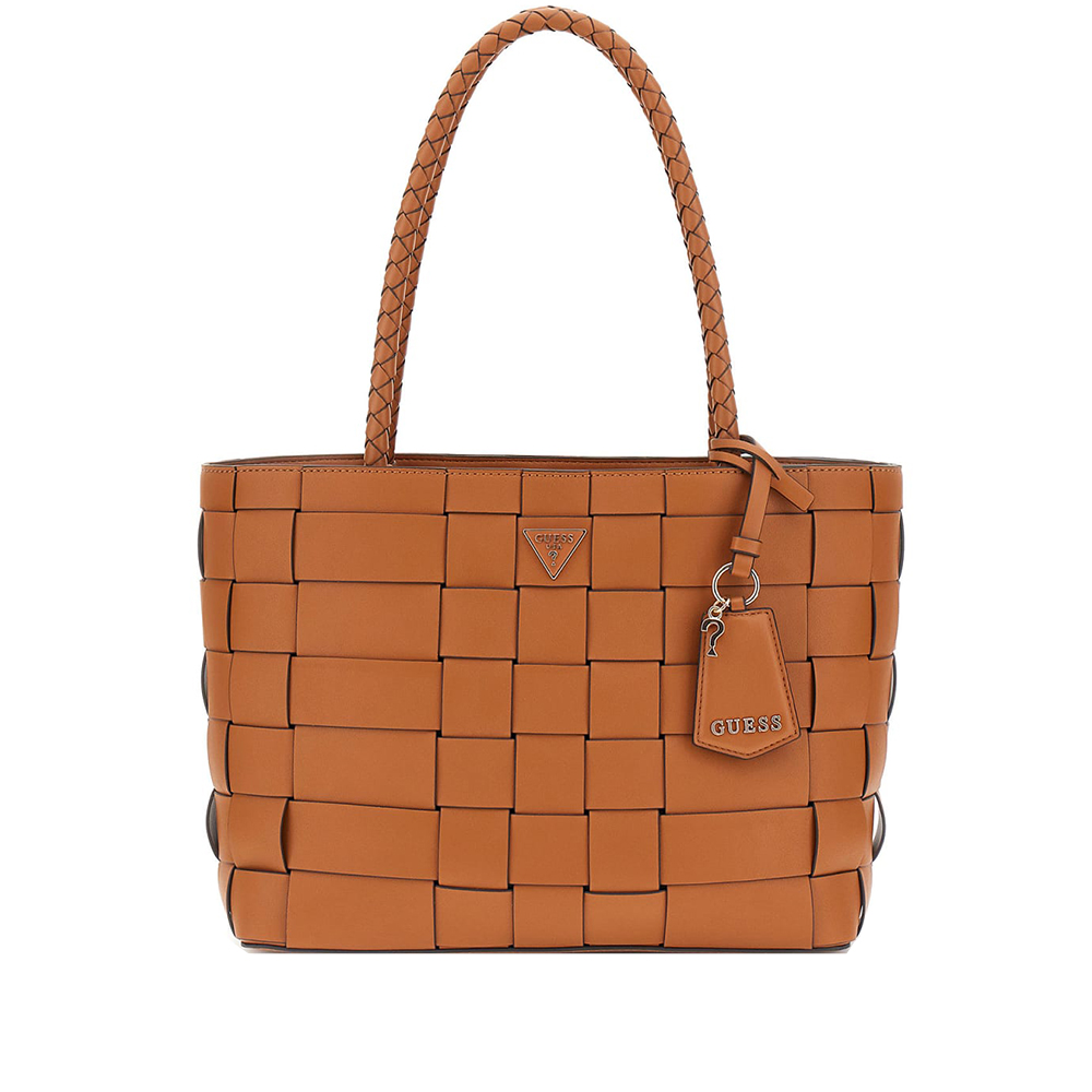 The Maylee Tote shoulder bag by Guess, with its beautiful interweaving, gives a soft and relaxed effect. Details that elevate the look, making the bag a must-have of the season.