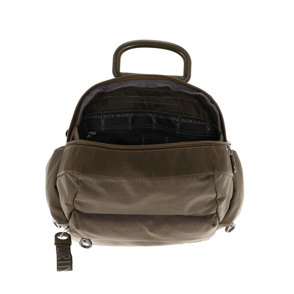 The Mandarina Duck MD backpack is a small backpack made of mitrix, the brand's signature material. It's lightweight, versatile, and features a unique iridescent effect. The adjustable shoulder straps and internal and external zippered pockets make it comfortable and functional. Redesigned accessories give it a more modern and contemporary look.