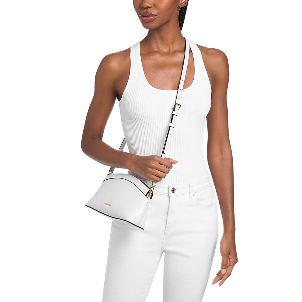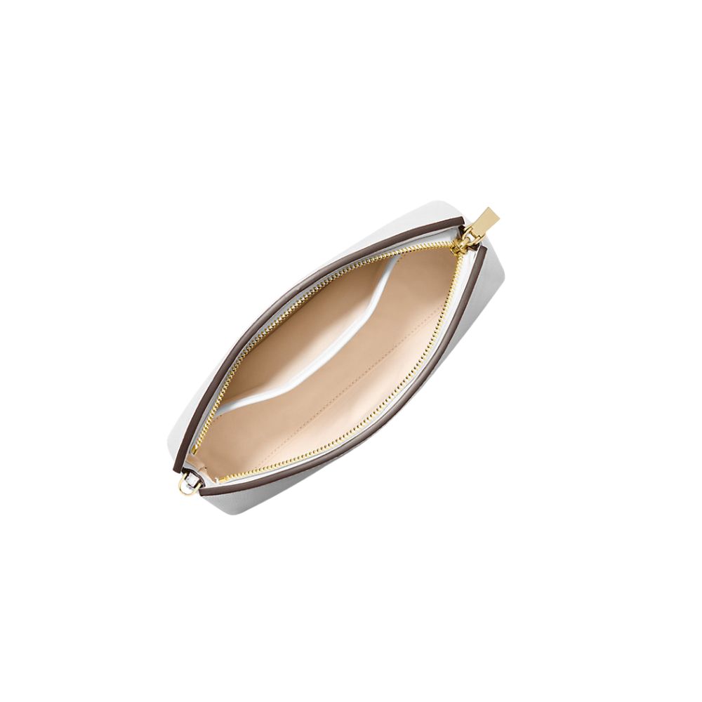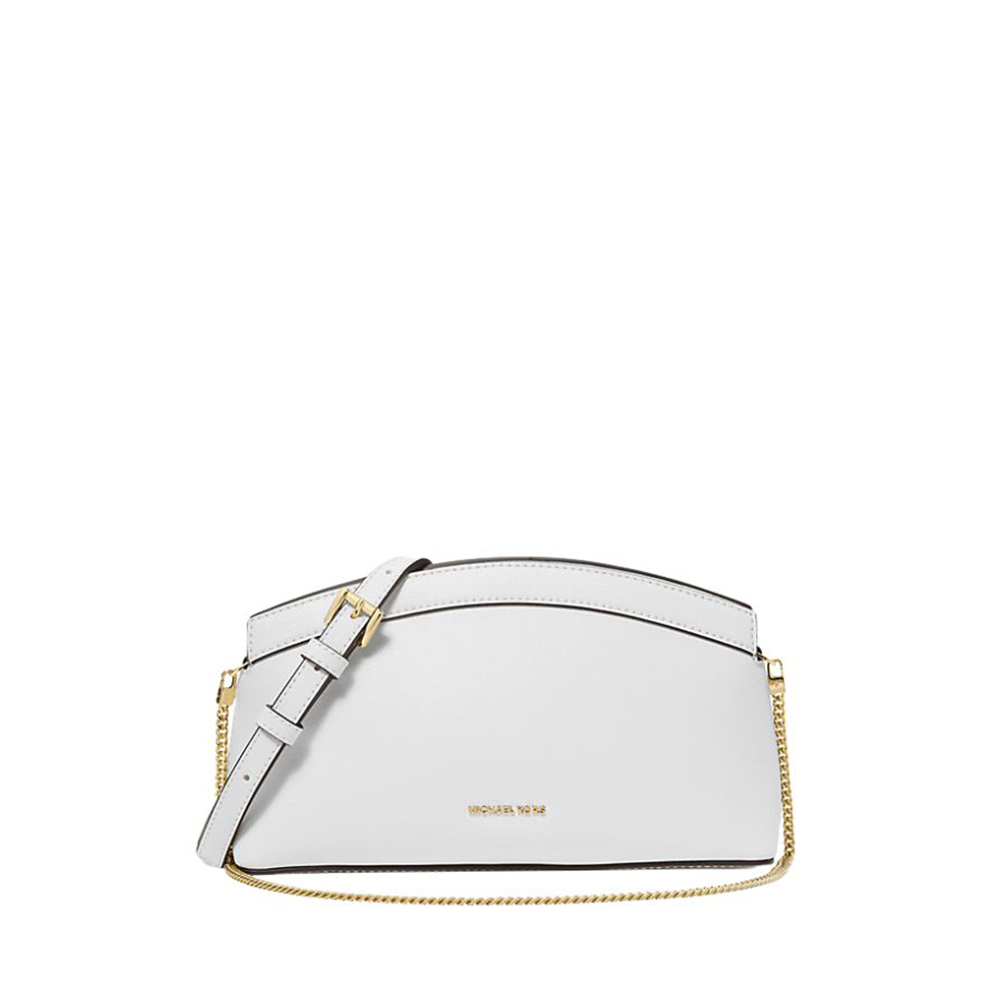 The Athena clutch by Michael Kors is small in size but of great impact and elegance. A thin, removable strap turns the silhouette into a shoulder strap, while the chain allows you to carry it by hand in the evening. Pair your jewelry with gold-toned metal details.