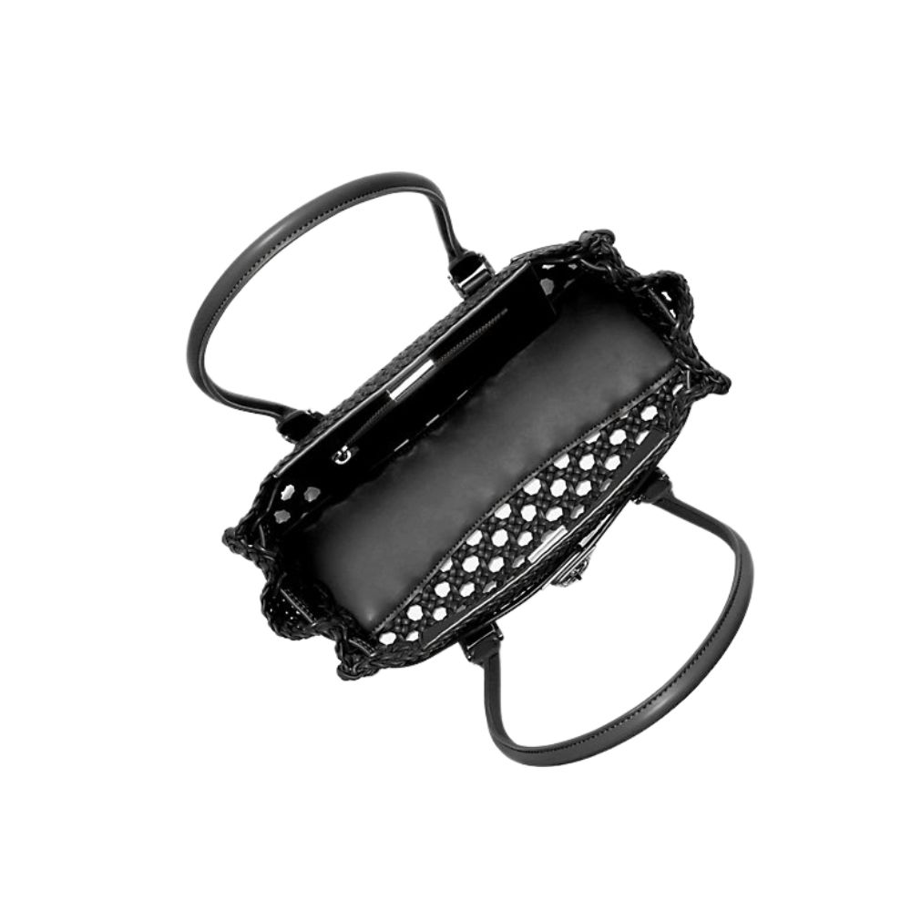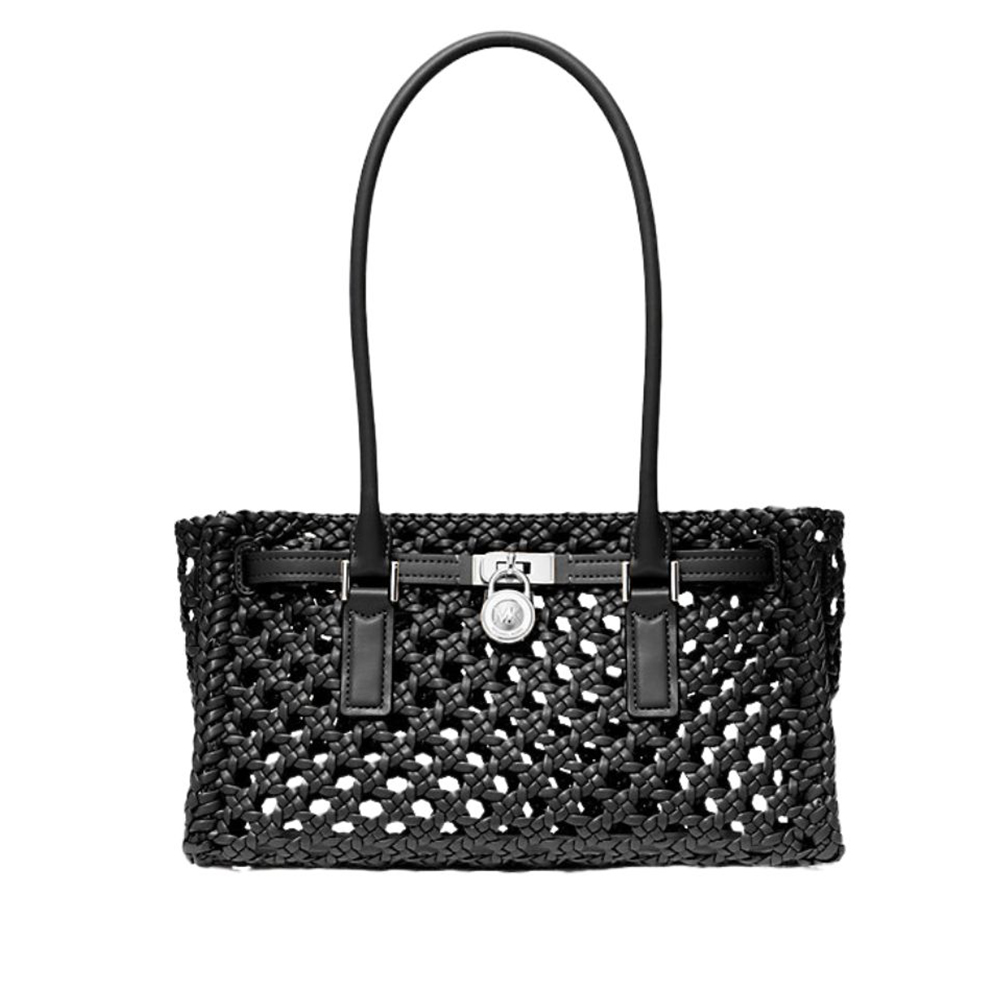 Michael Kors' Hamilton satchel, reissued for a quality, timeless design. The heritage-chic style of the Hamilton Moderne makes it a captivating accessory you'll love forever. This hand-woven style features side gussets and a smooth, belted finish, finished with a polished charm for a decorative touch. Carry it all day with the extra-long handles.
