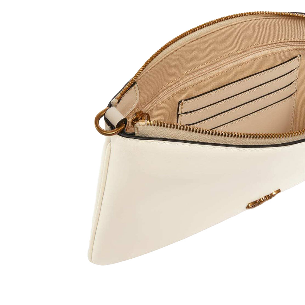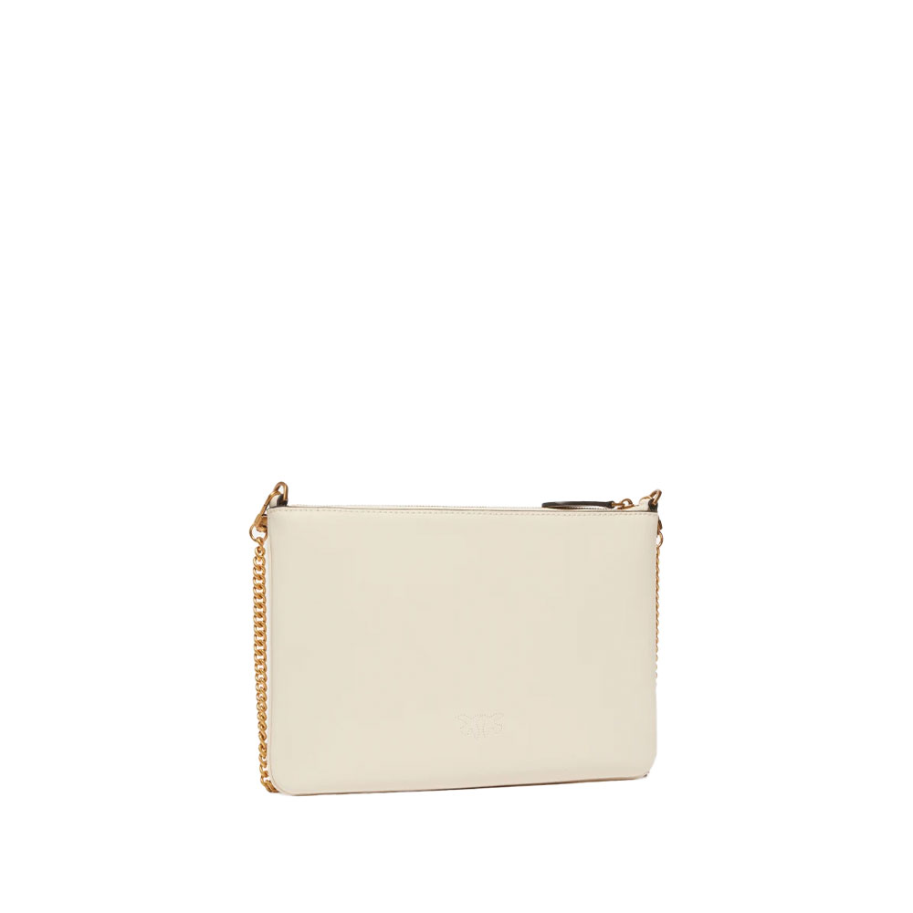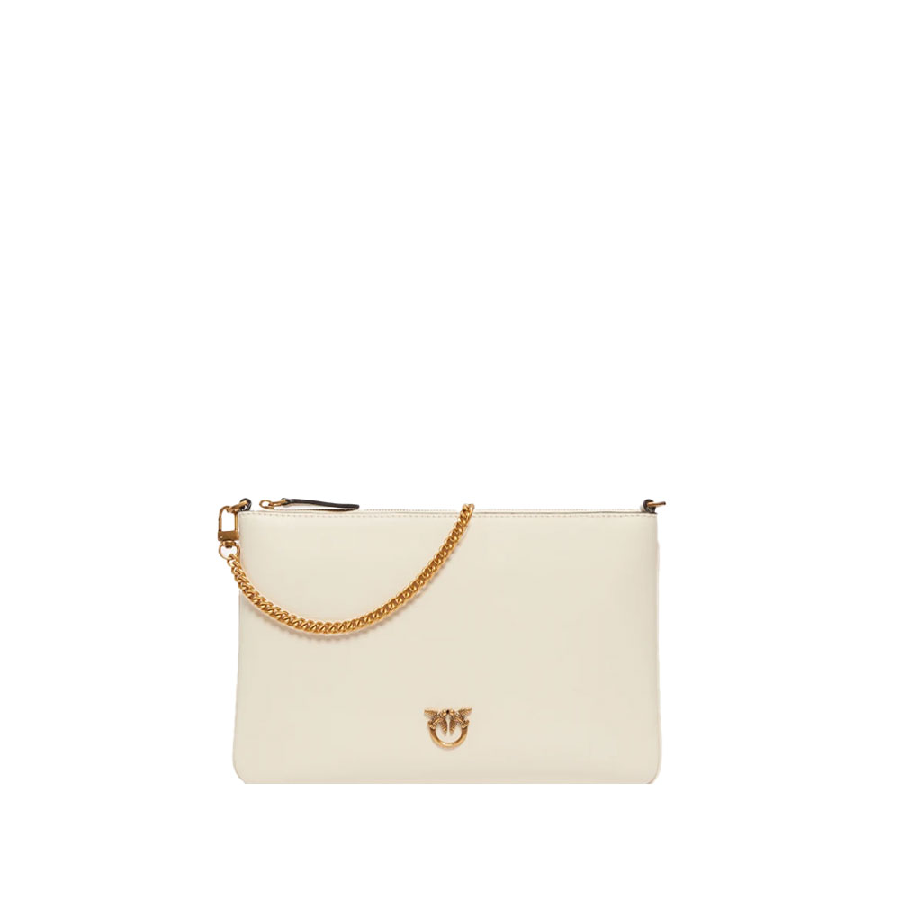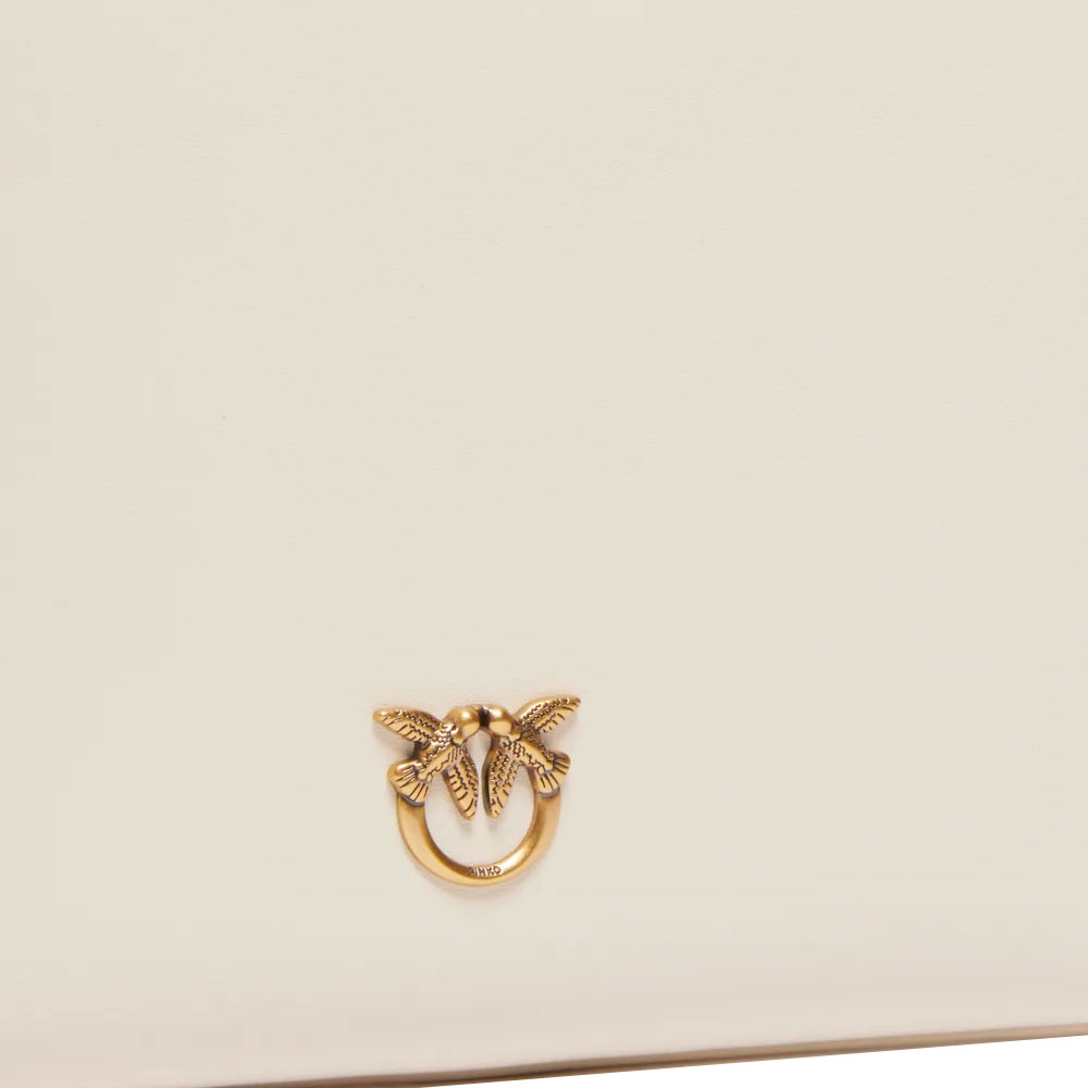 The Classic Flat Love Bag by Pinko in soft silky leather is personalized with a Love Birds Diamond Cut plaque. This bag can become a comfortable clutch bag by simply removing the shoulder strap. Ideal for both day and evening.