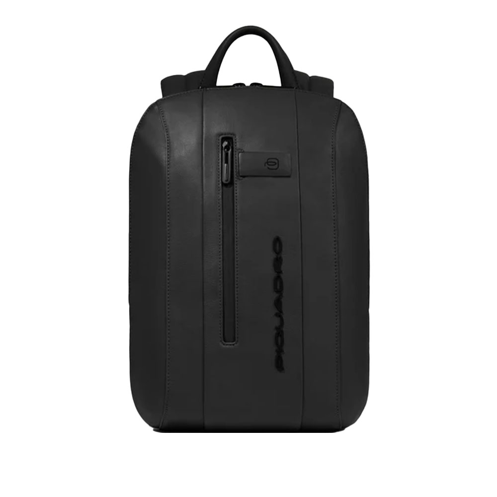 Small men's laptop and iPad backpack by Piquadro in leather with shockproof protection, glasses holder, and pocket for CONNEQU.