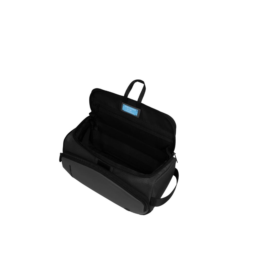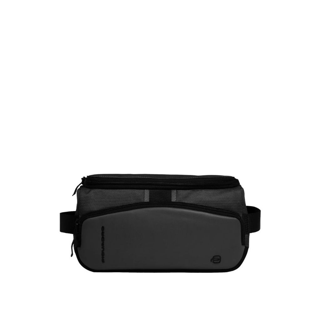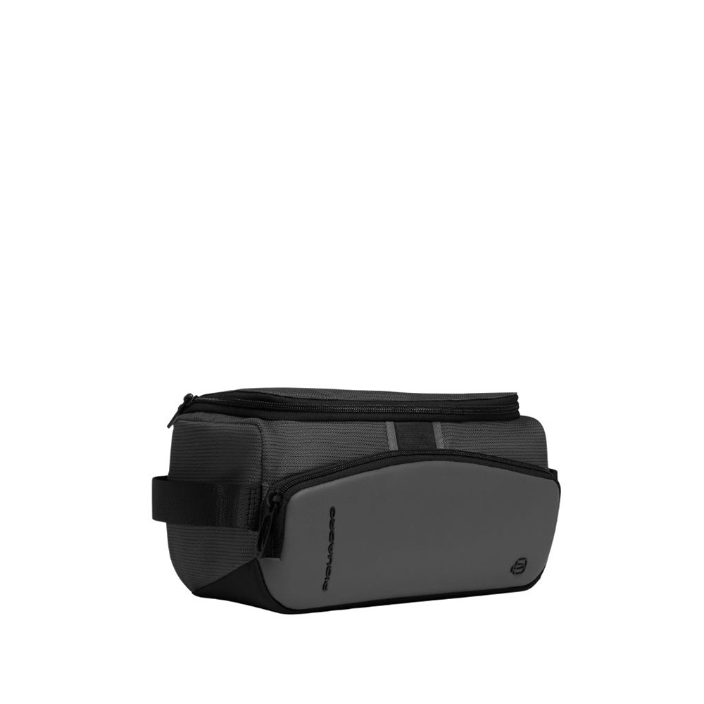Piquadro beauty case in recycled fabric and bio-based material.