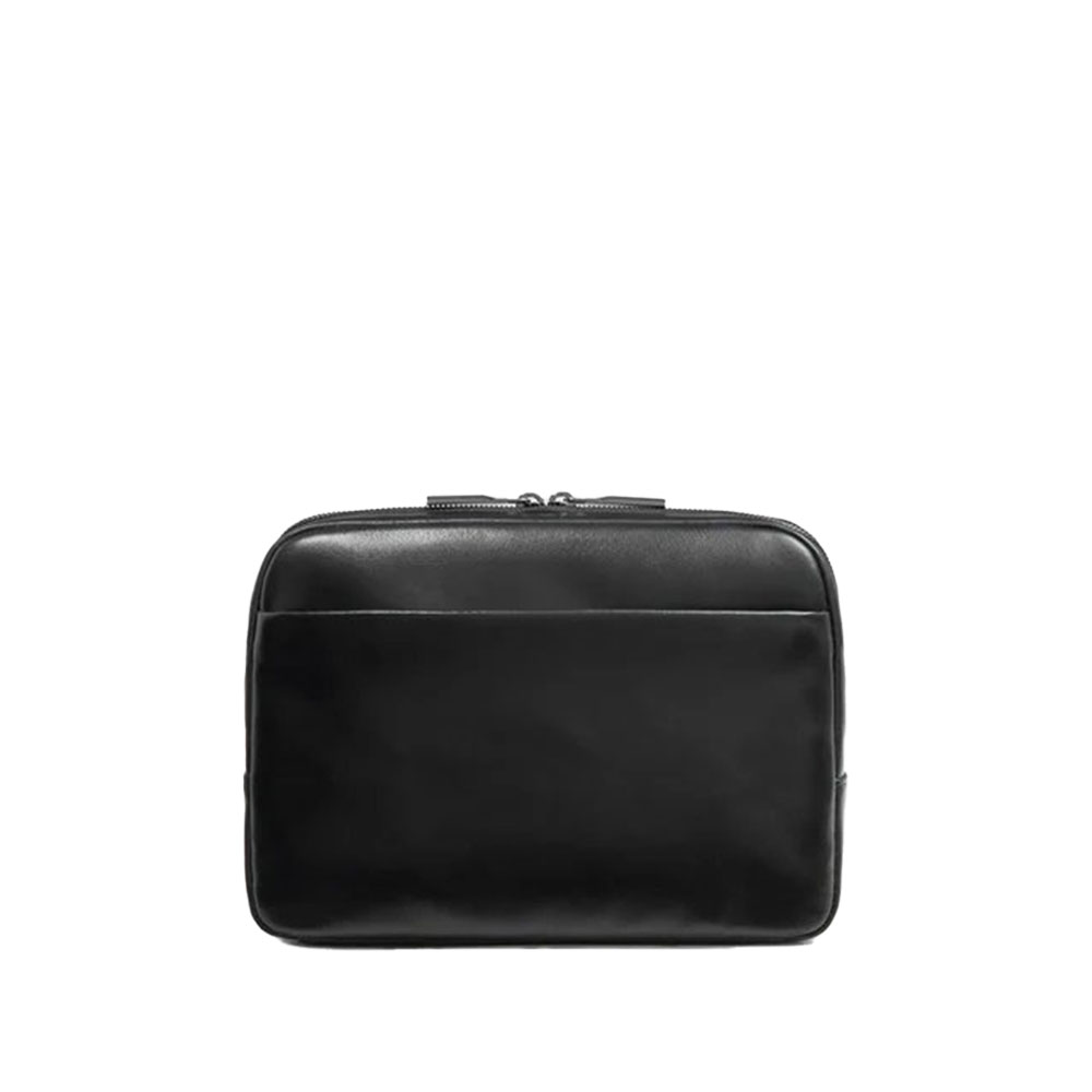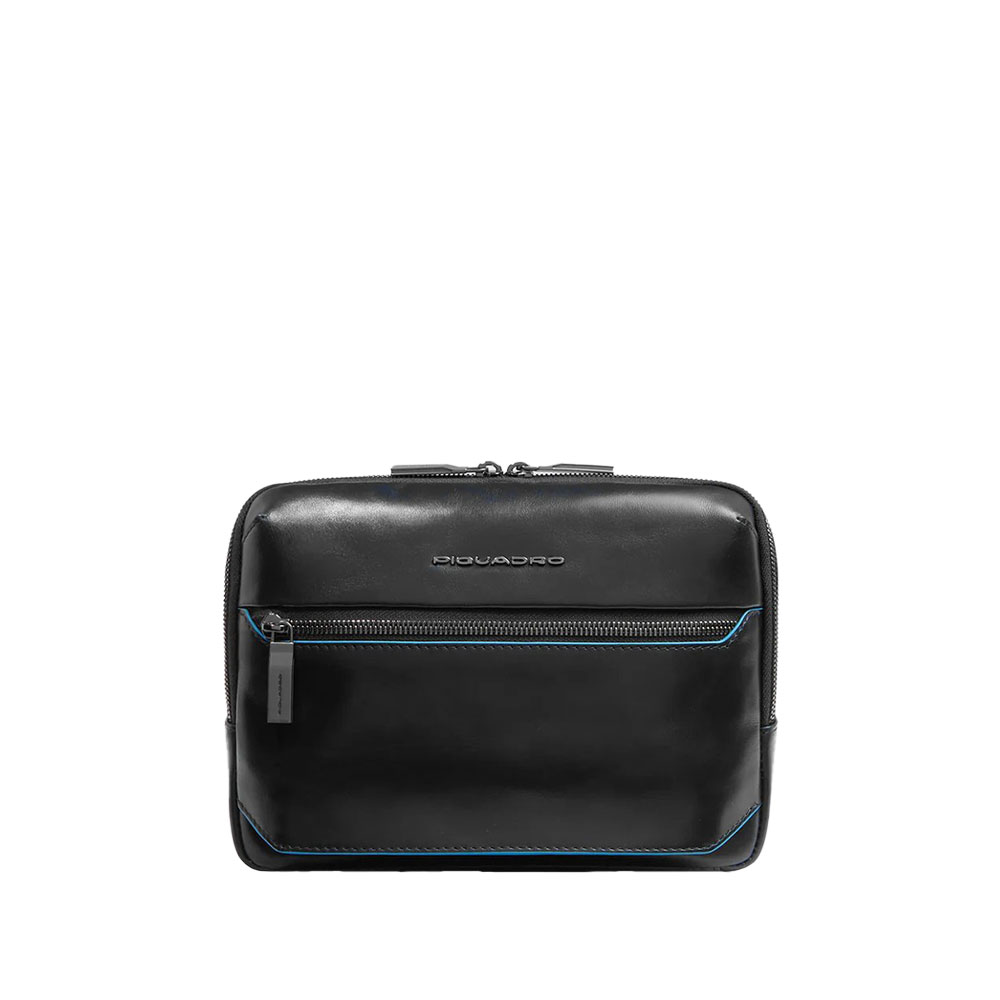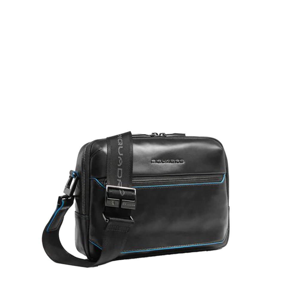 Blue Square mens shoulder strap from Piquadro iPad mini with pocket for AirPods, shielded with RFID fraud protection.