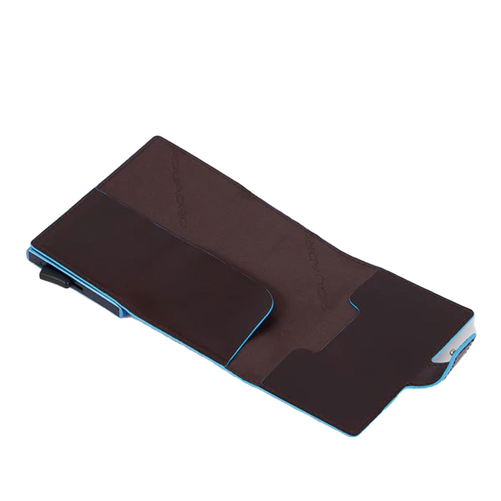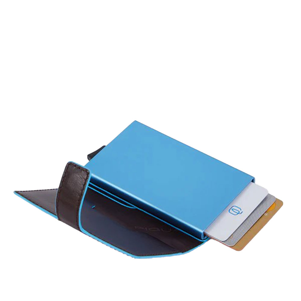 Credit card holder in metal Blue Square by Piquadro, shielded with RFID fraud protection.