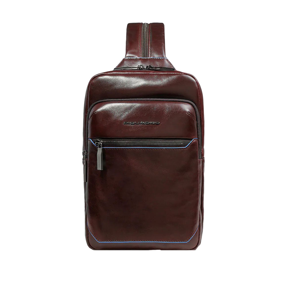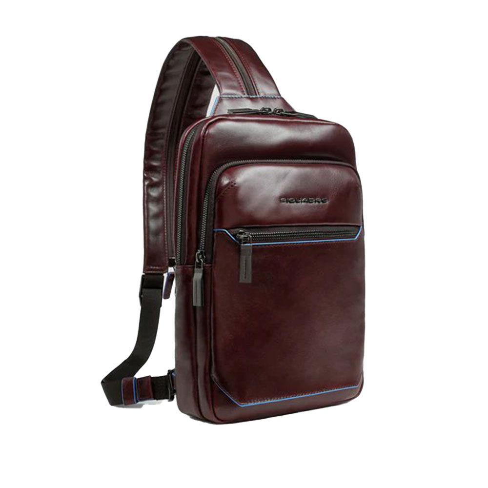 The Piquadro Blue Square sling bag for iPad can be transformed into a backpack thanks to the zipper on the shoulder strap. This sling bag features RFID protection.