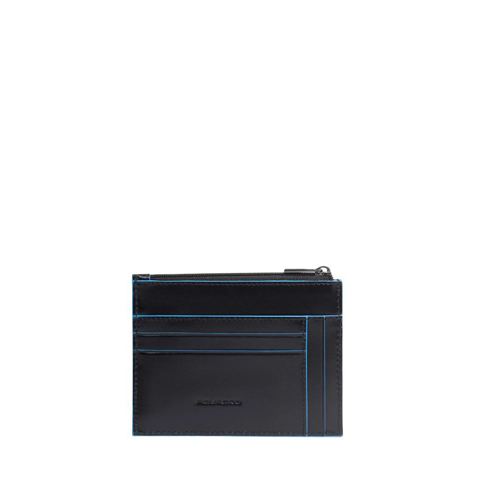 Men's leather credit card holder with coin purse, shielded with RFID protection by Piquadro.