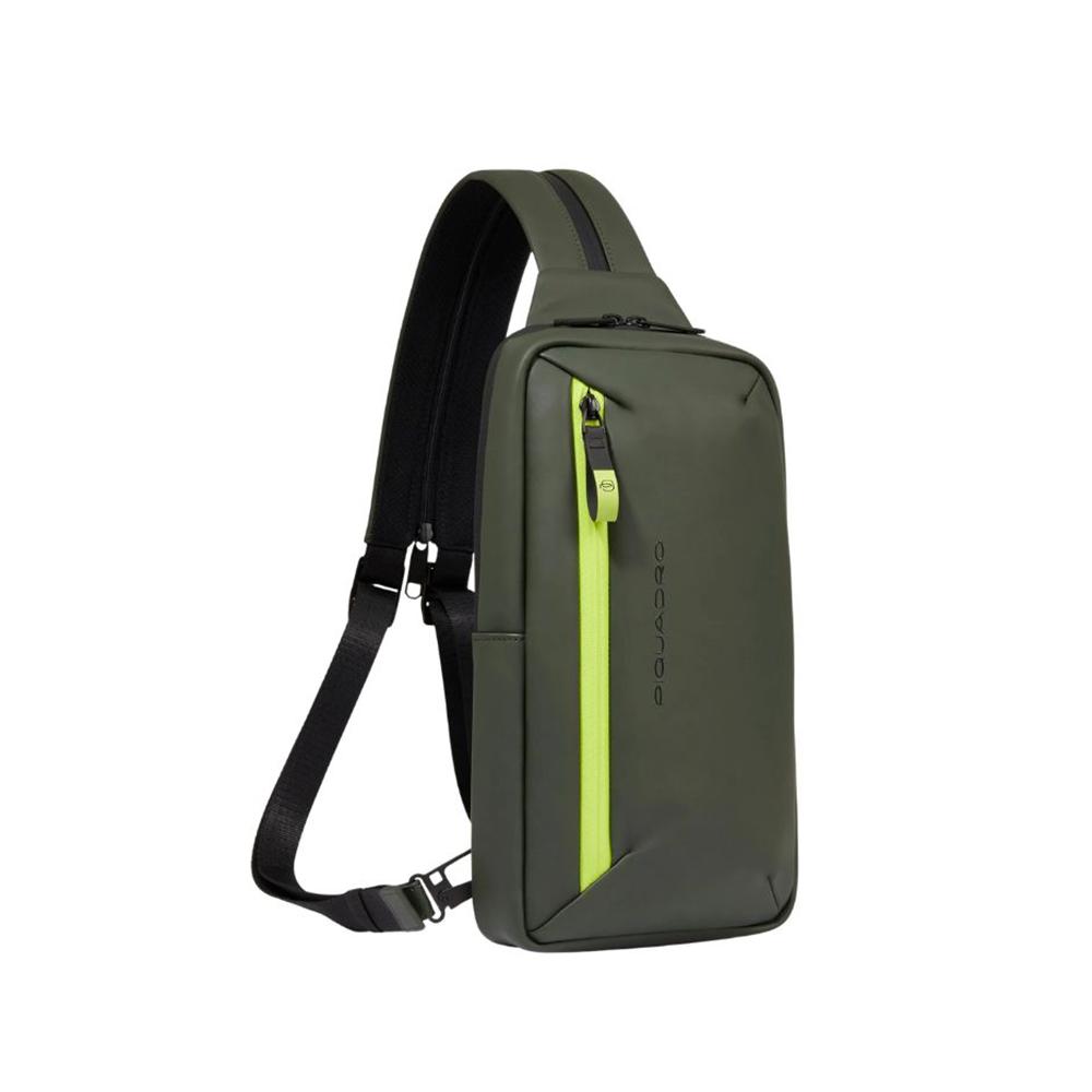 Piquadro iPad®mini sling backpack in water-resistant rubberized fabric with RFID protection and pocket for CONNEQU 4.0