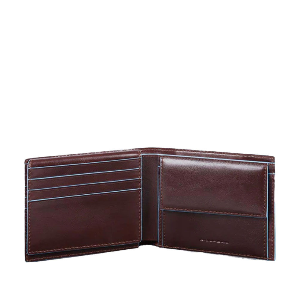 Mens wallet in leather with flyer by Piquadro with document holder, credit card holder and RFID protection.
