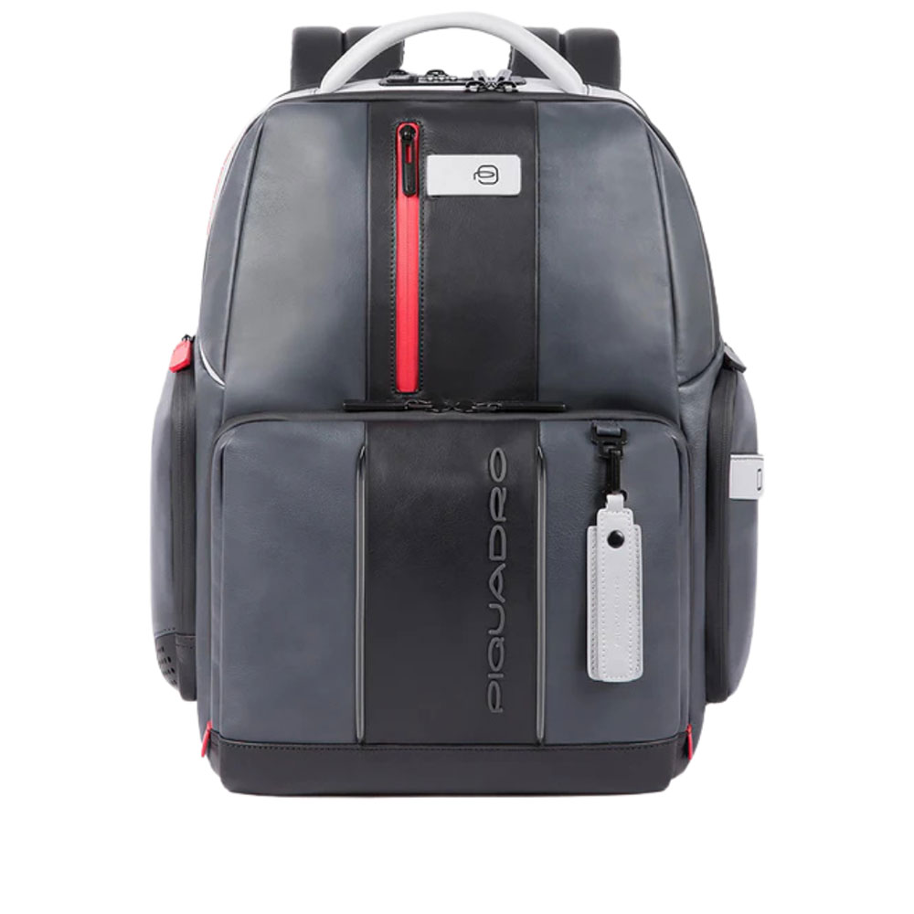 Men's customizable leather laptop and iPad® backpack with LED light, CONNEQU, anti-theft cable, USB and USB Type-C ports, shockproof and RFID protection