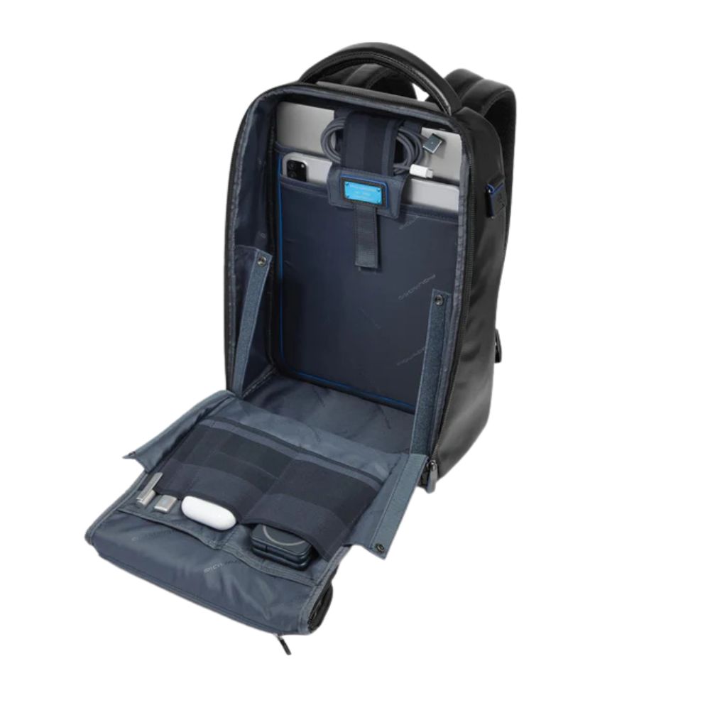 Customizable leather Fast-Check travel backpack for laptop and iPad® with pockets for AirPods® and umbrella, shockproof and RFID protection
