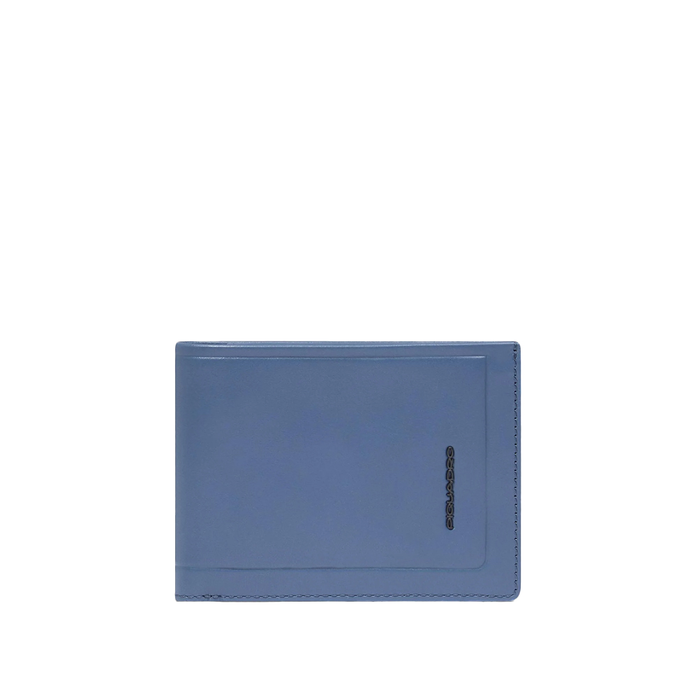 Wallet man in leather of Piquadro with coin holder, shielded with protection anti fraud RFID.